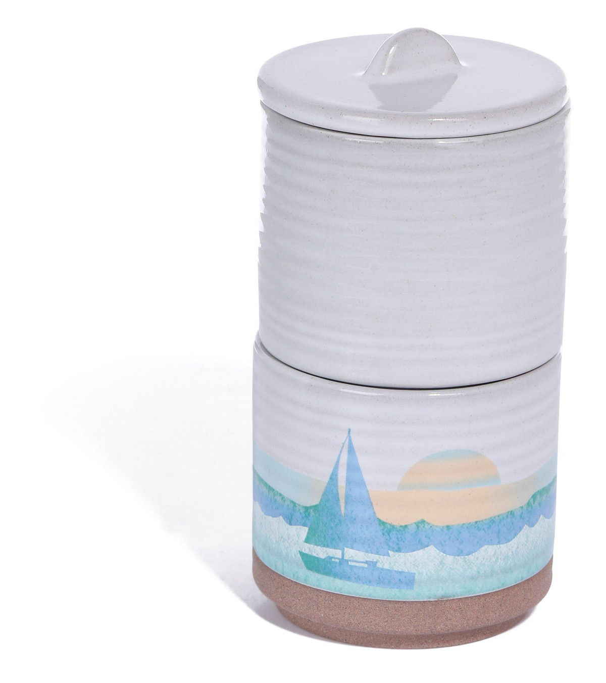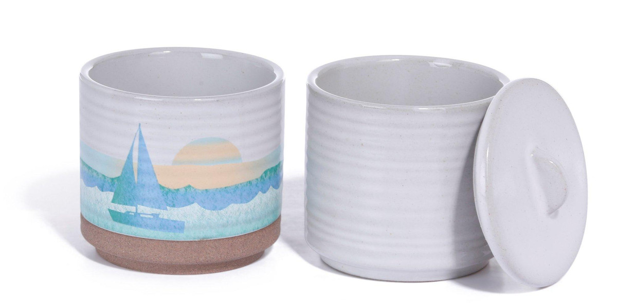 Our 2 Pk On The Beach Mini Spice Cellars are perfect for serving salt, pepper, or your favorite spice in style! Each cellar measures 2.5 in x 3 in and stacked together they create a serene beach inspired design.