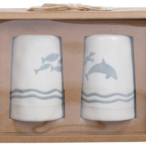 These DEMDACO Ocean Salt and Pepper Shakers add a touch of coastal style to your home dining & entertaining. This salt & pepper shaker set features durable ceramic construction, and an under the sea design. These serving accessories will bring a coordinated look to your table décor.