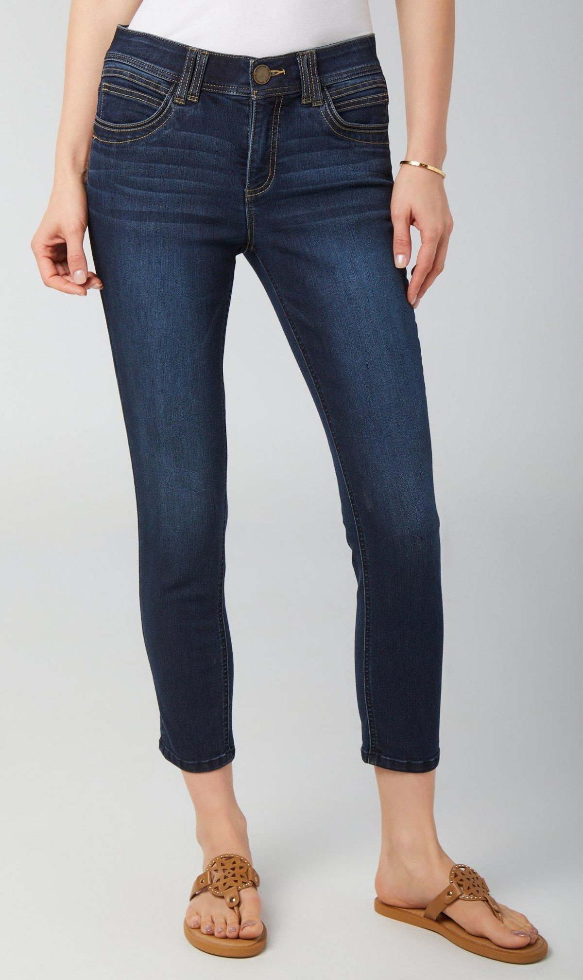 Step out in style with the Roll Cuff Crop Jeans. Featuring classic 5-pocket styling, these jeans offer both practicality and a timeless look. The roll cuff hem adds a trendy touch, making them perfect for any casual outing. Comfortable and versatile, these crop jeans are a must-have addition to your wardrobe. Inseam measures approximately 25 in. Fabrication is 54% cotton, 17% polyester, 27% rayon, 2% spandex.