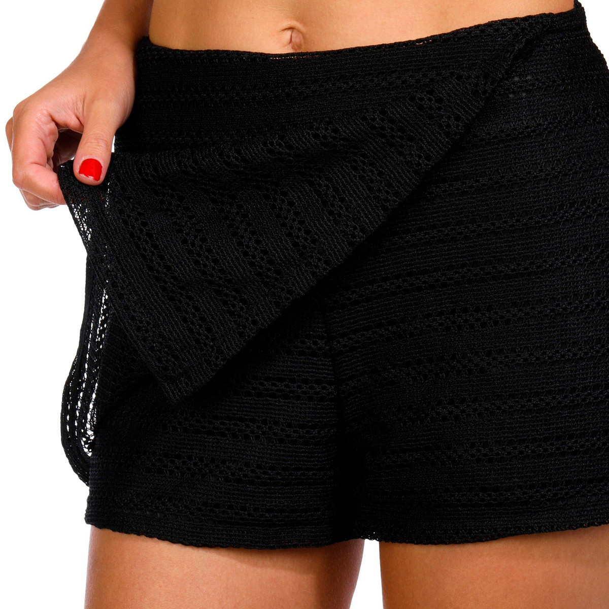 Discover the charm of this Solid Color Crochet Wrap Skort. This skort features an open knit design that adds a touch of elegance and texture to your outfit. The built-in short liner ensures comfort and modesty. Ideal for both casual and dressy occasions, this crochet skort effortlessly combines style and practicality. Fabrication is 98% polyester, 2% spandex. Lining is 100% polyester. Skort length measures approximately 10.5 in.