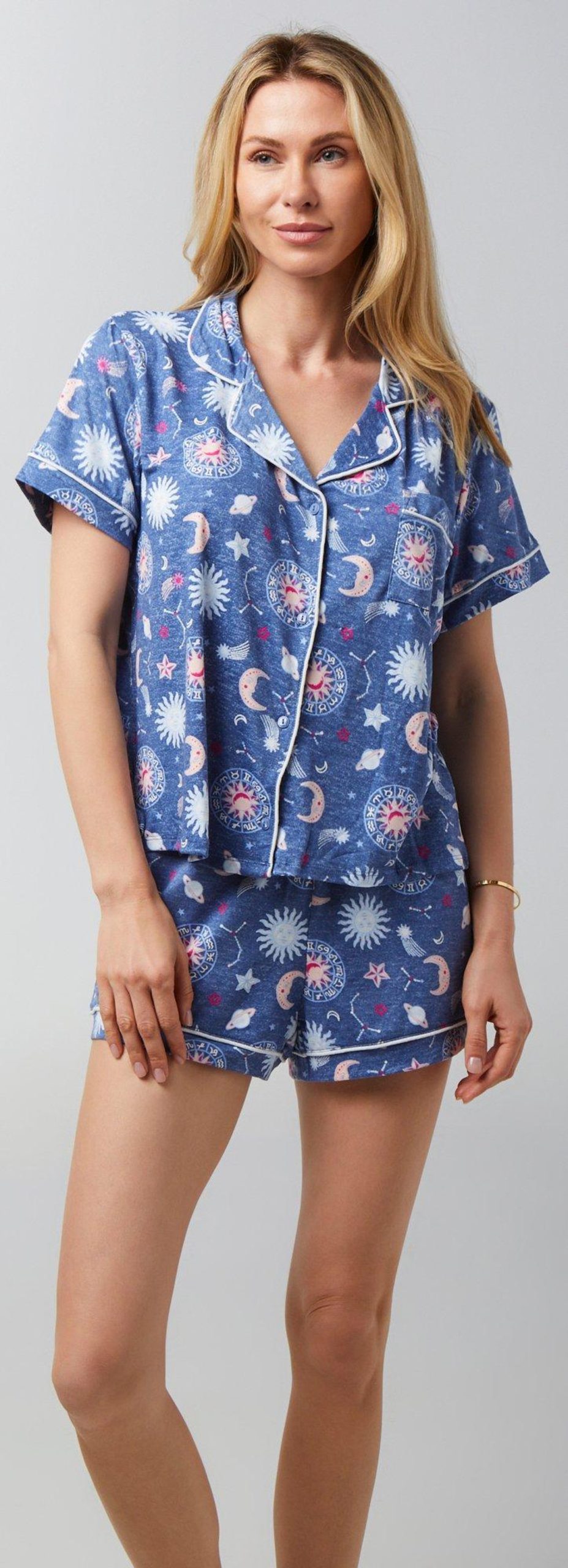 Introducing our Women’s 2 Pc Notch Collar Pajama Shorts Set, crafted from a soft and stretchy blend of polyester and spandex. Enjoy a touch of paradise with this charming pajama set.
