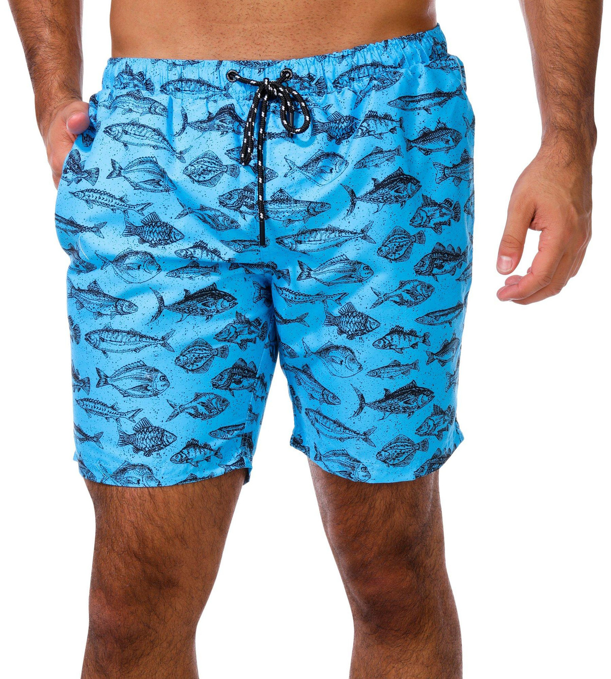 Dive into summer with the Men’s Ocean Fish Print Swim Shorts. Featuring a vibrant fish print, drawstring waistband, side seam pockets, and a back pocket, these shorts combine fun style with everyday functionality.