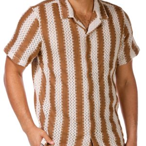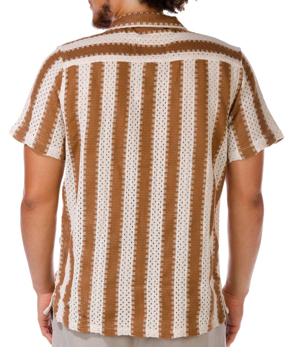 Keep it cool and classic with a striped short sleeve shirt featuring an open weave for extra breathability. The buttoned front adds a timeless touch, making it ideal for warm-weather days, laid-back outings, or effortless layering. Fabrication is 51% cotton, 49% polyester.