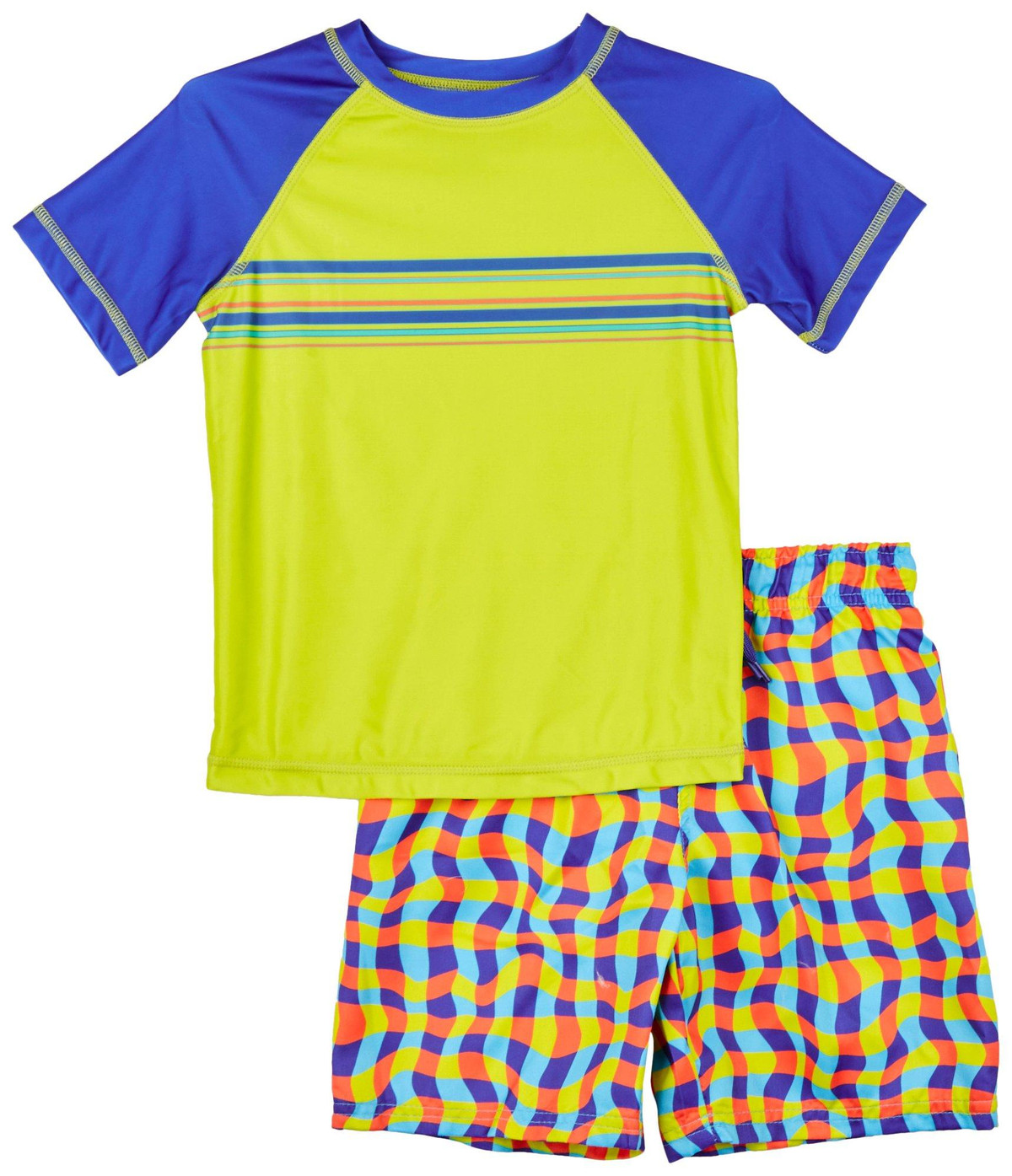 DOT & ZAZZ 2 Pc Boys Wavy Swim Shorts Set