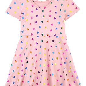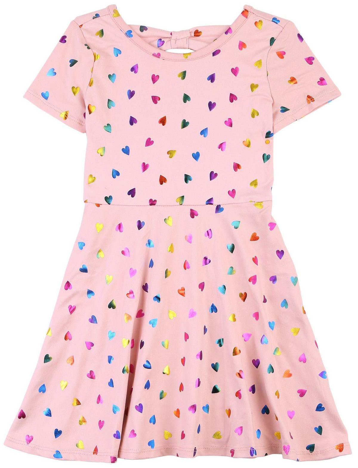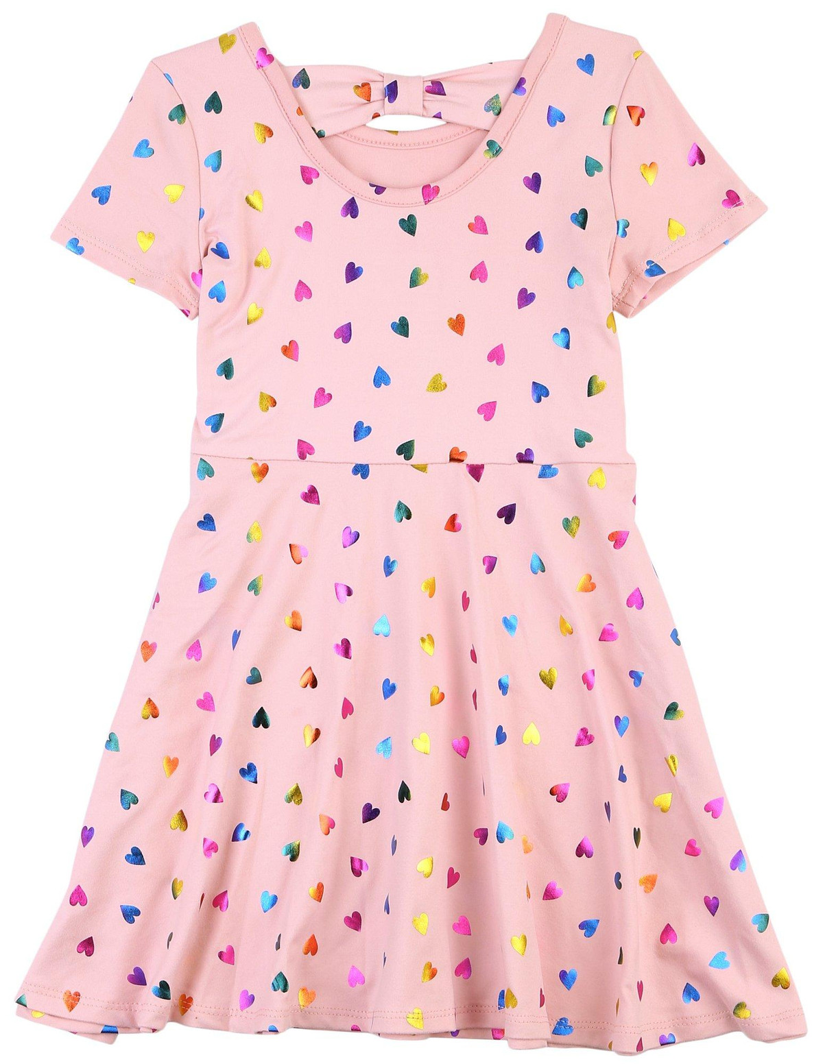 DOT & ZAZZ Toddler Girls Rainbow Heart Short Sleeve Dress