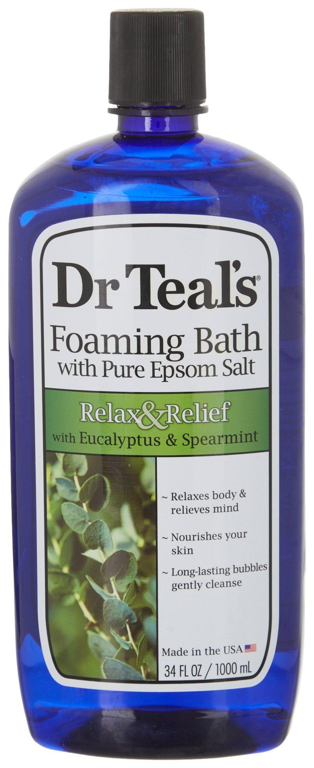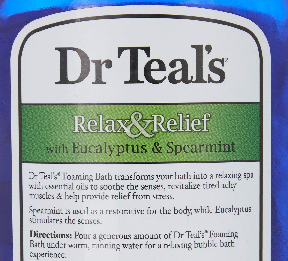 Dr. Teals provides high-performance remedies for high-performance people. This Eucalyptus & Spearmint Epsom Foaming Bath is formulated with pure Epsom salt and eucalyptus and spearmint essential oils to stimulate the senses, relax muscles, and relieve stress. Expiration 12 months after first use. 34 fl. oz.