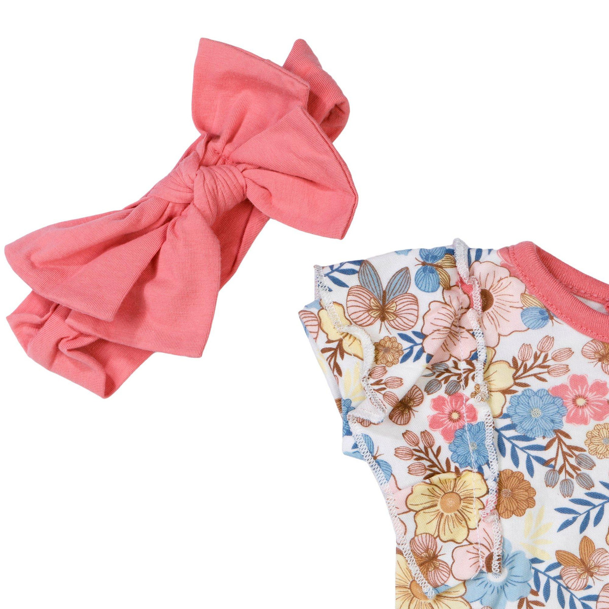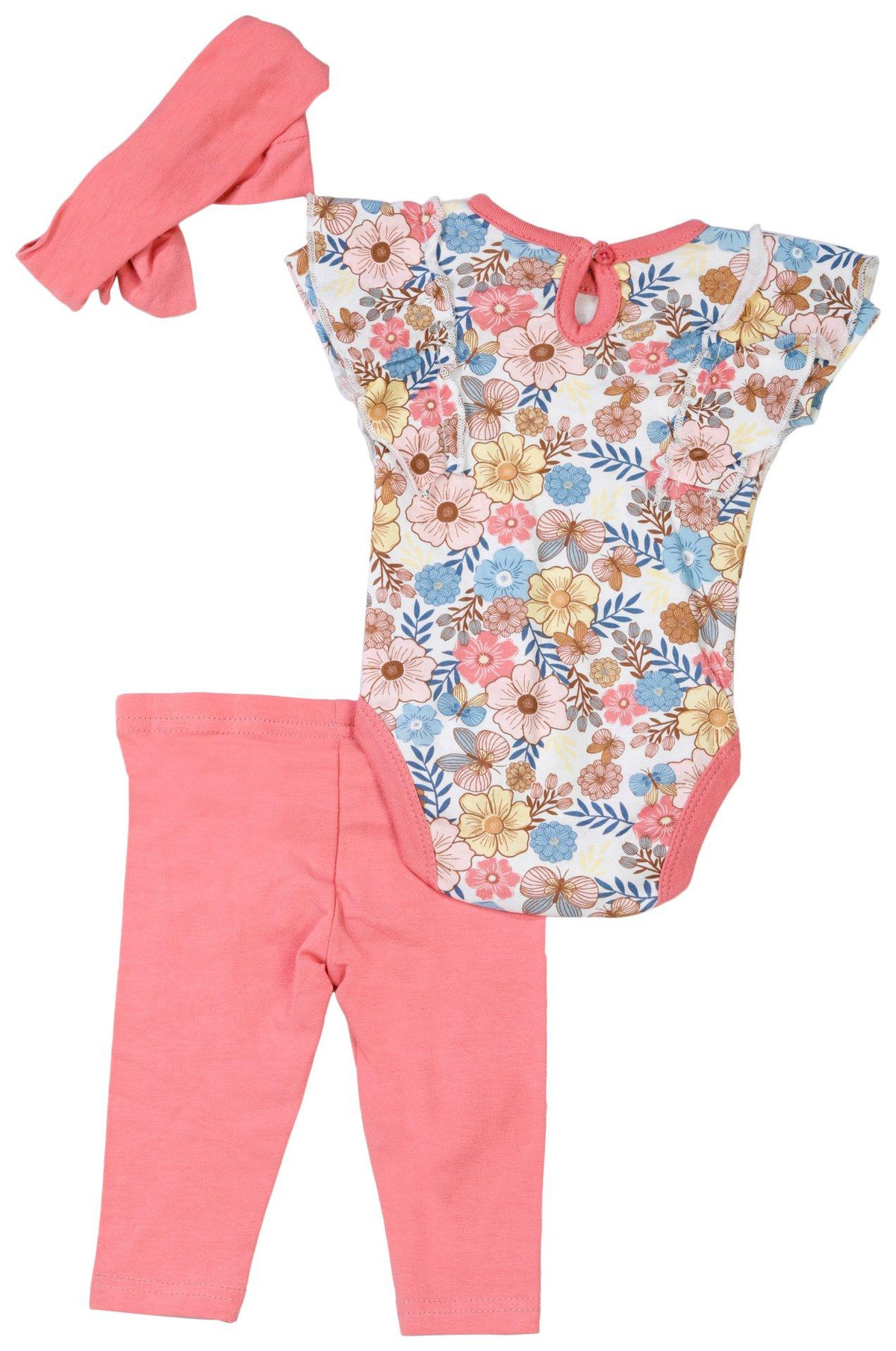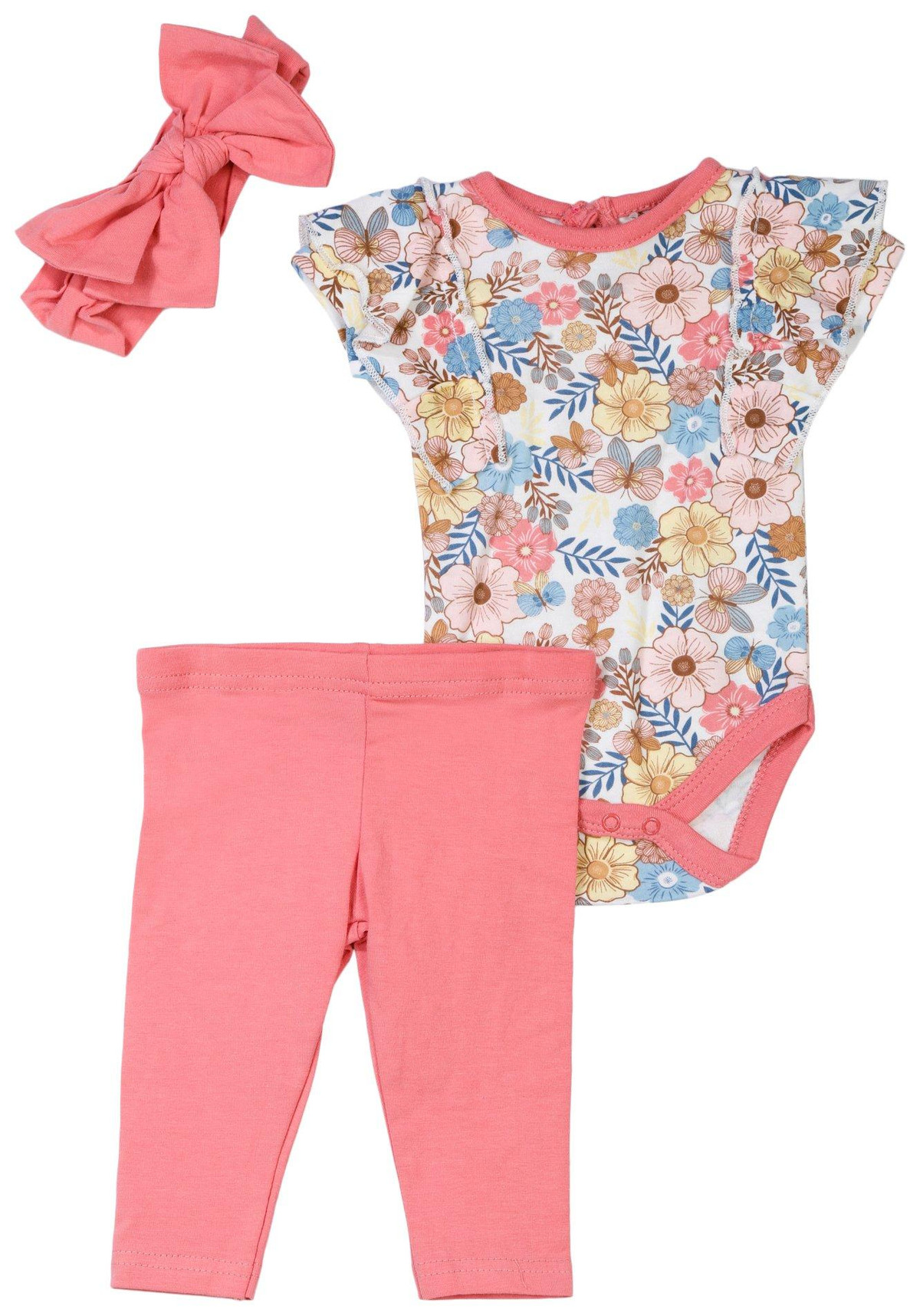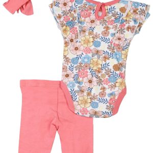 DreamGro Baby Girls 3 Pc Bodysuit Pant Headband Set