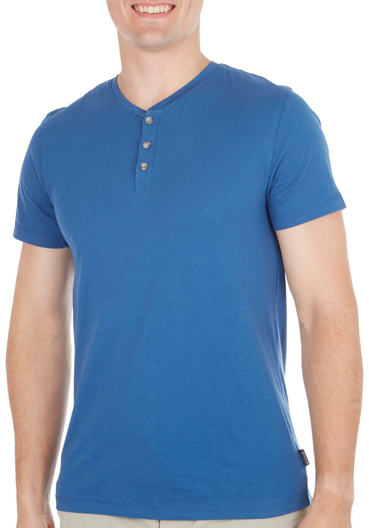 DVISION Mens Solid Short Sleeve Henley Shirt