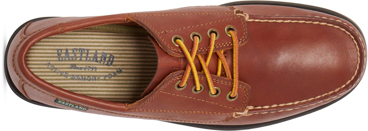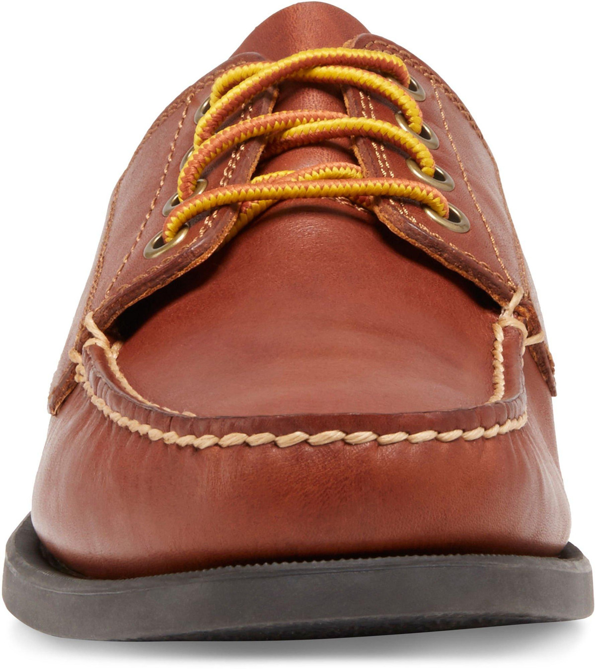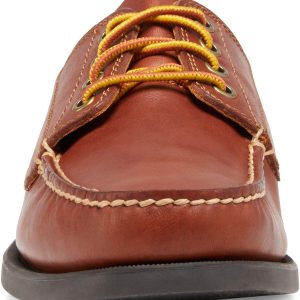 The hand-sewn moccasin construction features an easy-to-care-for full grain leather upper. The fully lined, cushioned insole and supportive shank reduces foot and leg fatigue while the shock absorbing, flexible natural rubber outsole offers durability and traction.