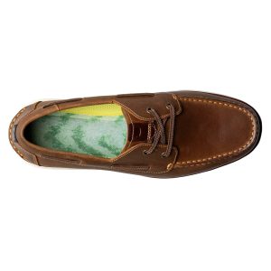 The hand-sewn moccasin construction features an easy-to-care-for full grain leather upper. The fully lined, cushioned insole and supportive shank reduces foot and leg fatigue while the shock absorbing, flexible natural rubber outsole offers durability and traction.