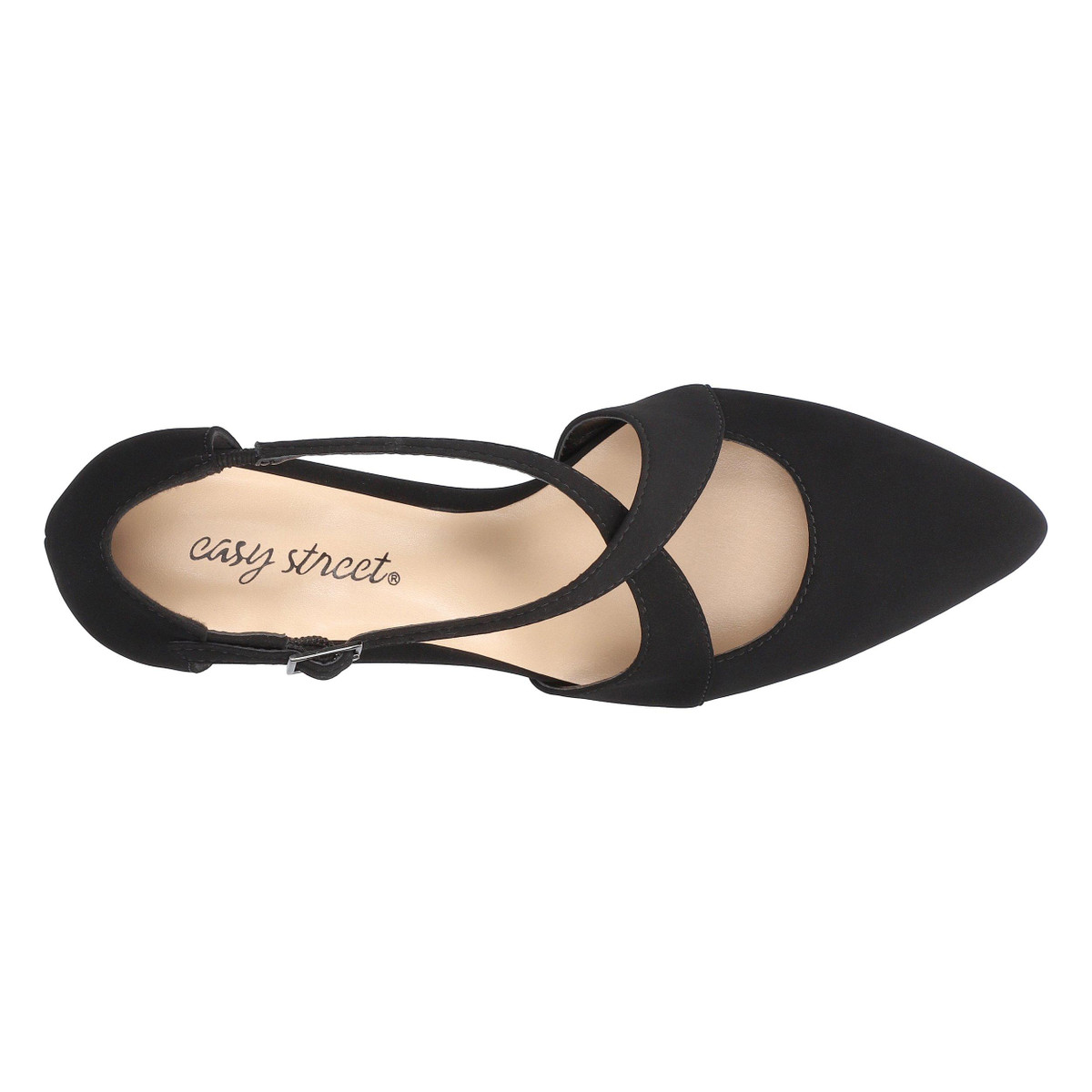 Add sophistication to your look with the Elegance by Easy Street. The criss cross upper design, enhances its dress heel and tapered toe. Comfort features include inside goring and an adjustable buckle a custom fit, padded insole and a flexible outsole for effortless wear.