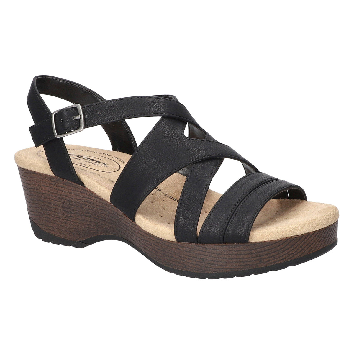 As strappy sandals continue to trend, the Rosella slingback sandal from Easy Works Street Series will have you spending your days in contemporary fashion and comfort. The non-marking slip-resistant outsole, paired with the Easy Motion Pro Comfort System anti-microbial footbed with arch support, ensures you can stay in all-day comfort. An adjustable buckle allows for a custom fit.