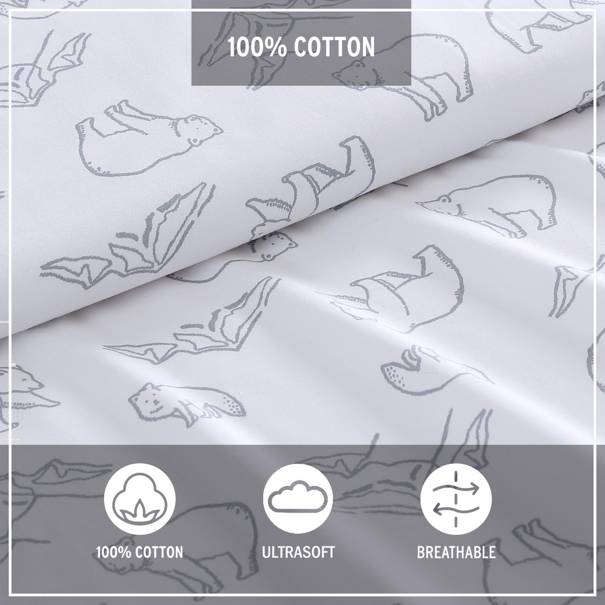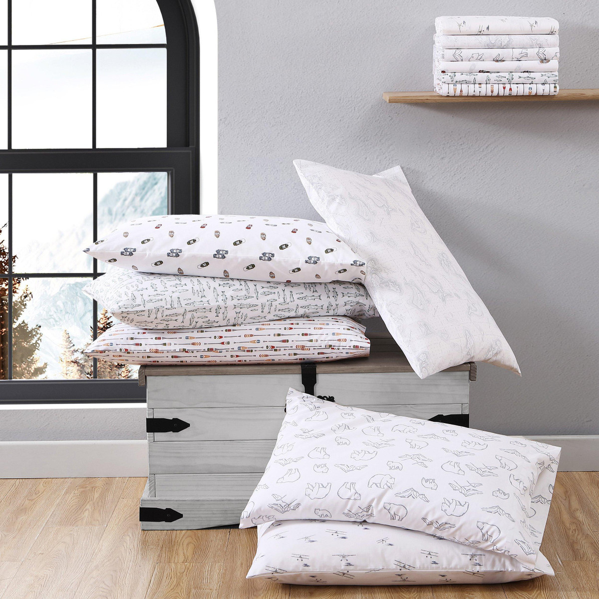 Add a touch of wilderness charm to your bedroom with the Eddie Bauer Smokey Bear Camp Sheet Set. Made from 100% breathable cotton percale, these sheets feature unique prints that get softer with every wash. The fully elasticized fitted sheet ensures a snug fit, while OEKO-TEX certified dyes offer peace of mind. Machine washable for easy care, this set blends comfort, style, and sustainability in one cozy package.