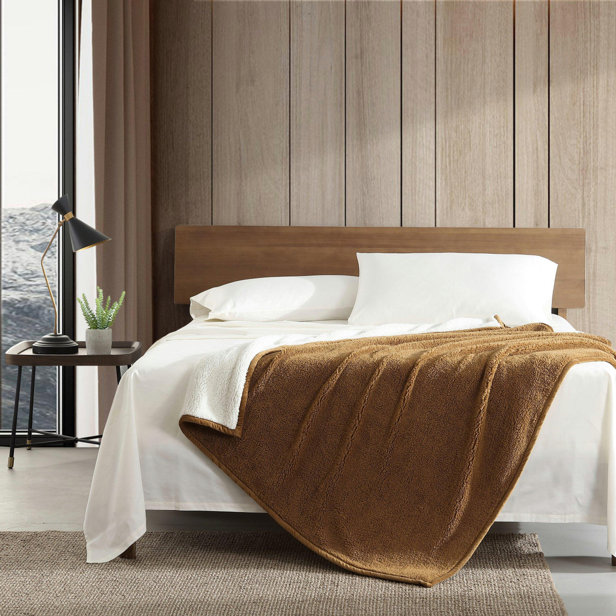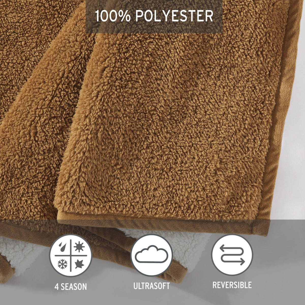 Introducing the Eddie Bauer bi-colored faux shearling collection. Made from 100% polyester, this throw will keep you snuggly and warm. Perfect for your sofa, an accent for your bed, travel and gifting. Includes one throw blanket. Mesurments 50” x 60”