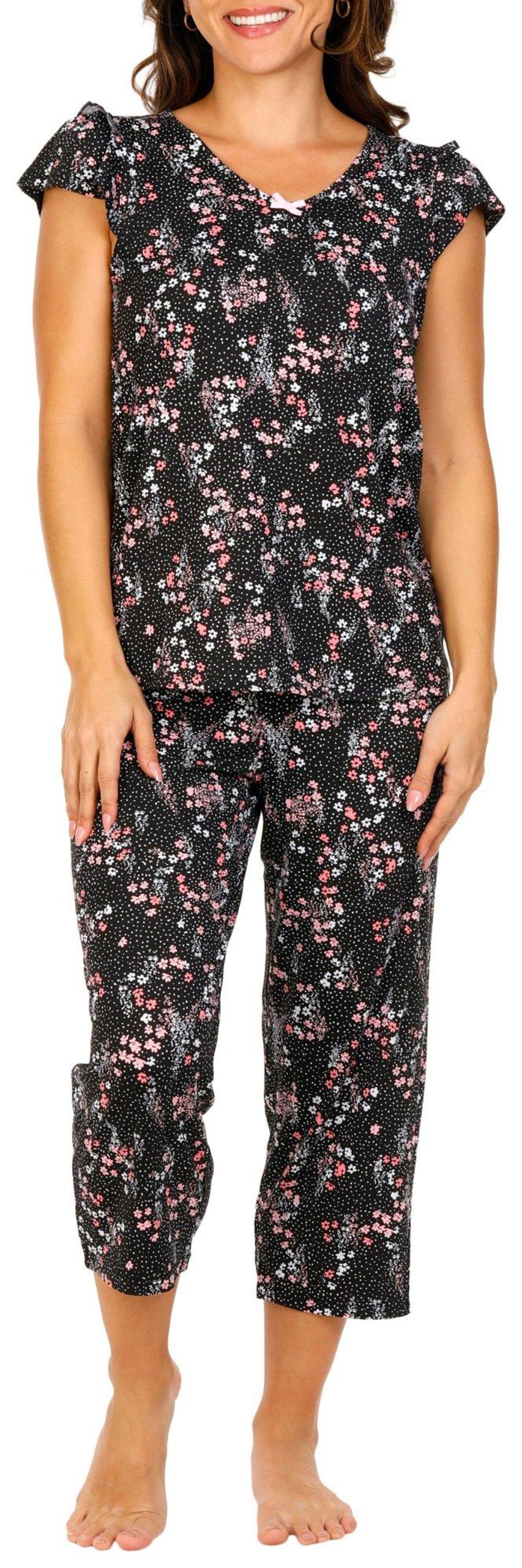 The Cozy Luxe Womens Capri Pajama Set offers ultimate comfort with its soft, breathable cotton-spandex blend. The relaxed-fit top with a V-neck and capri-length pants with an elastic waistband ensure a flattering, comfortable fit. Perfect for lounging or sleeping, its stylish and easy to care for. The top length measures approximately 26 in. The inseam measures approximately 23 in. Fabrication 95% rayon, 5% spandex.