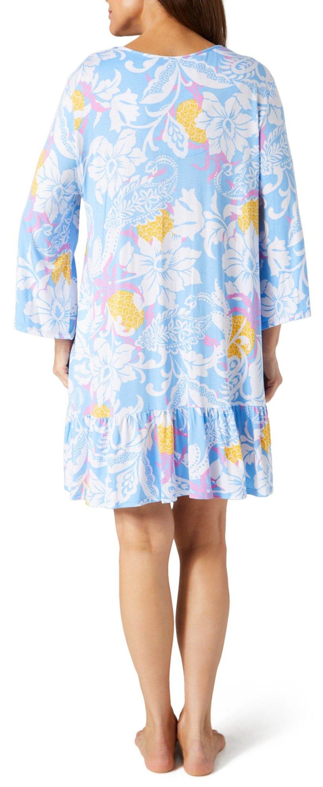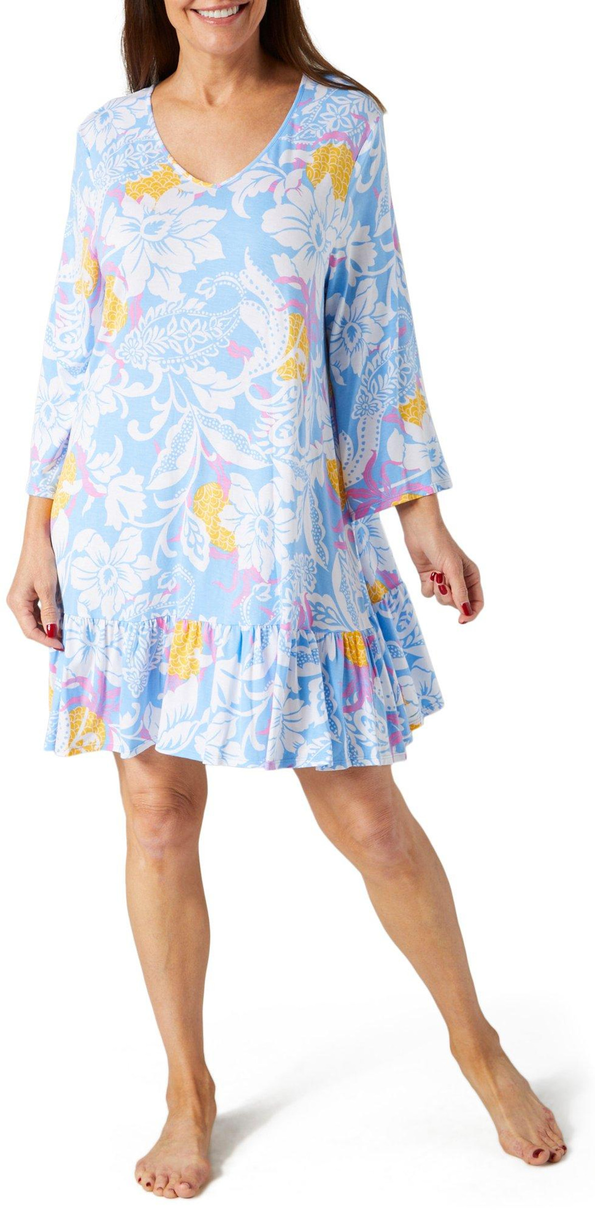 Relax in style with our Women’s 3/4 Sleeve Pajama Dress. Made from a soft blend of rayon and spandex, this dress features a stylish print, a flattering v-neckline, and comfortable 3/4 sleeves. Perfect for cozy nights in, it combines elegance and ease effortlessly.