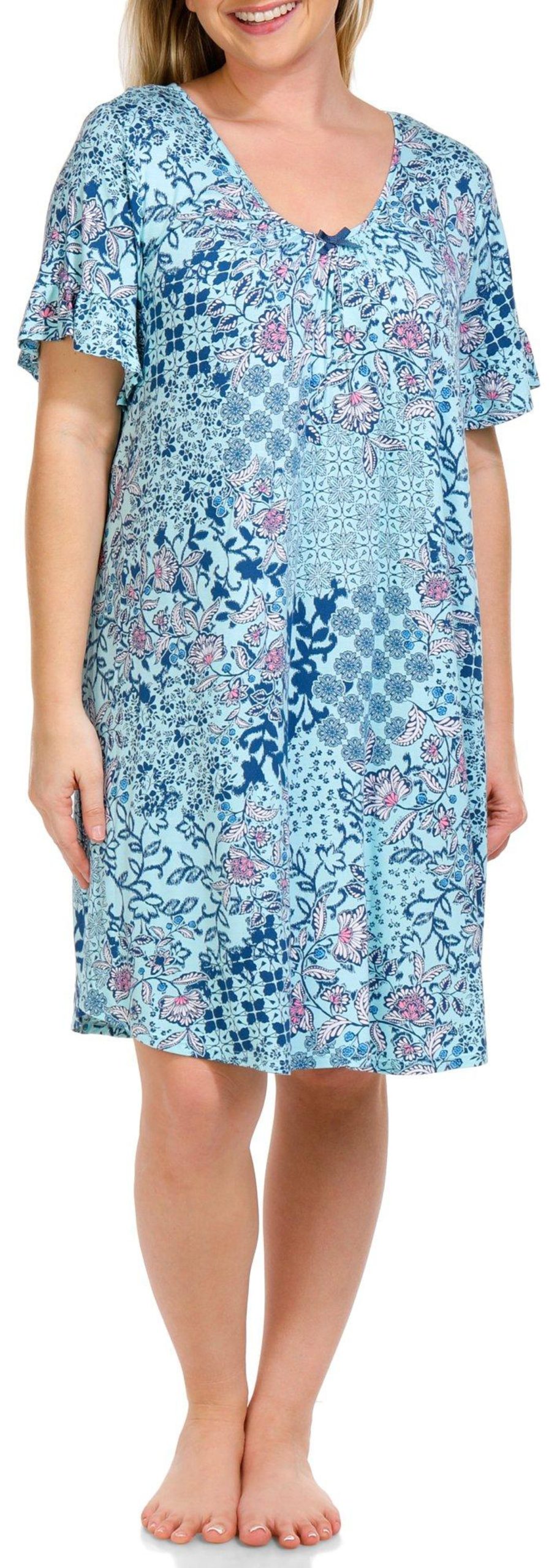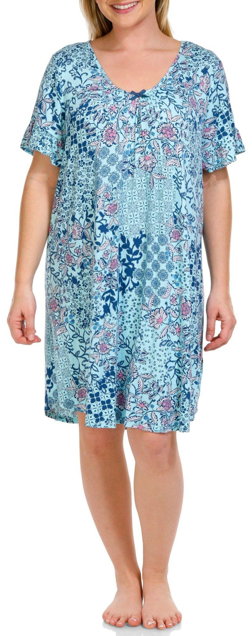 Ellen Tracy Womens Floral Short Sleeve Chemise