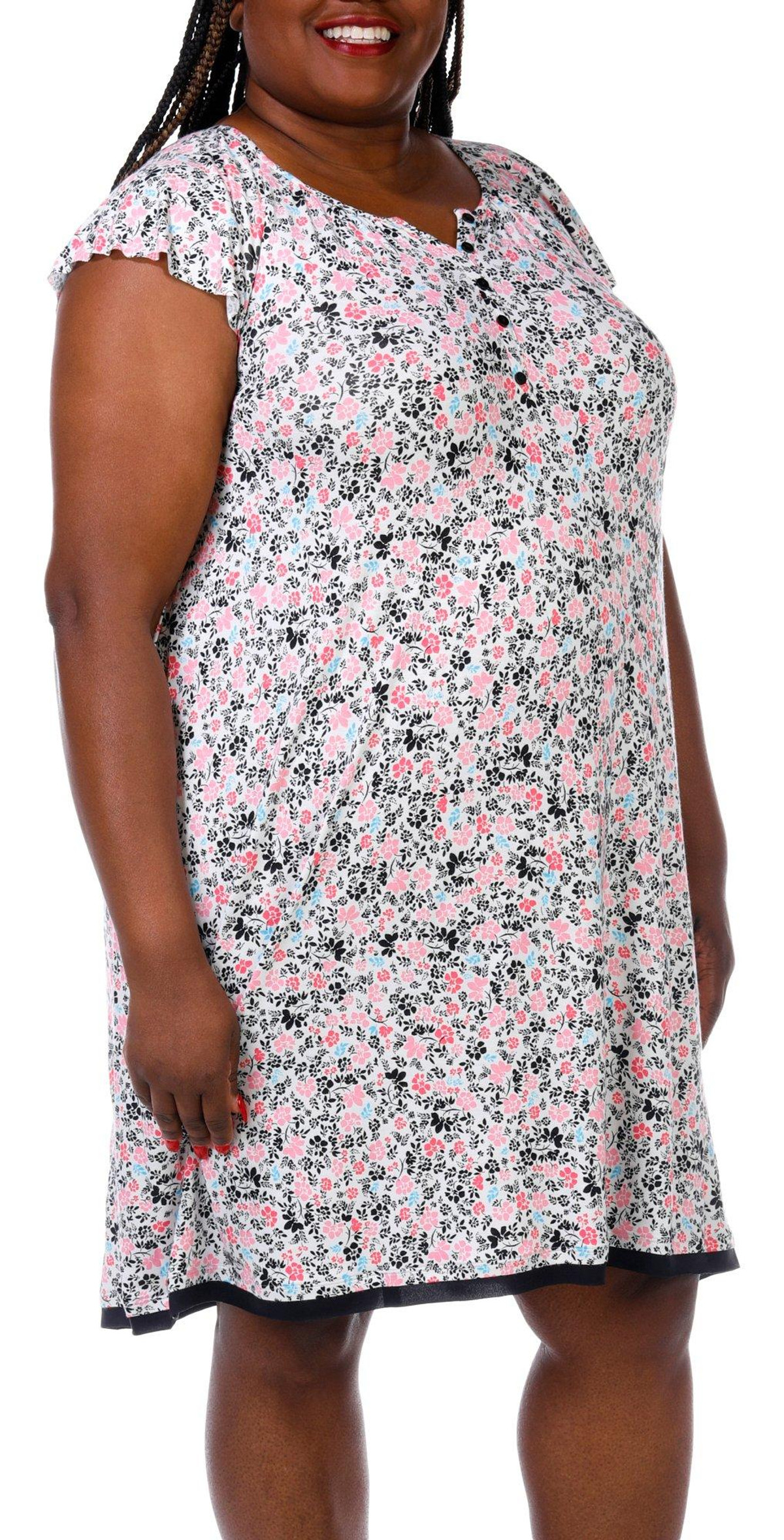 Ellen Tracy Women's Short Sleeve Floral Night Gown