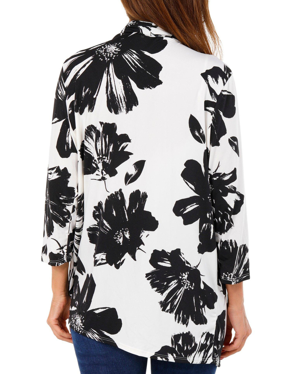 This women’s floral cardigan features an open front design and 3/4 sleeves. Light and breezy, it adds a soft, feminine touch to any outfit, perfect for layering through the seasons. Fabrication 96% polyester, 4% spandex