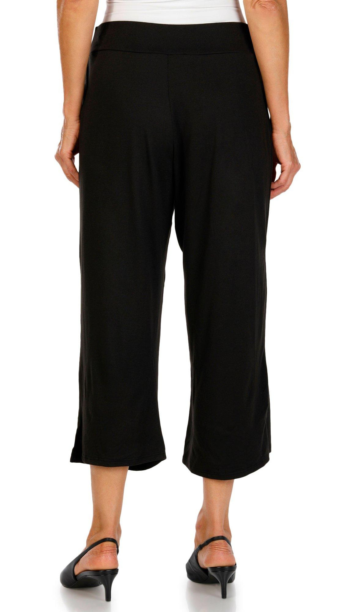 Enjoy all-day comfort in the Women’s Solid Capris. Made with soft fabric in a solid color, these capris feature a relaxed 23-inch inseam and an easy pull-on elastic waistband. Perfect for casual outings or lounging in style. Fabrication 96% polyester, 4% spandex