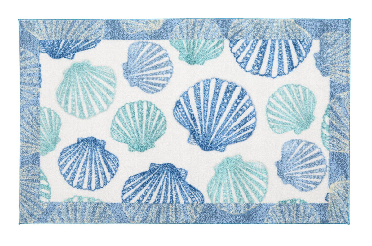 Introducing the Shells print Accent Rug, a vibrant addition to any room. This stunning rug features a colorful print that brings a touch of coastal charm to your home. Its non-skid backing ensures it stays securely in place, providing both beauty and safety. Measures 20 in x 32 in.