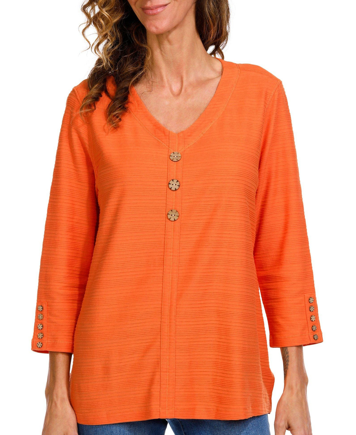 Erin London Womens Solid 3/4 Sleeve Textured Top