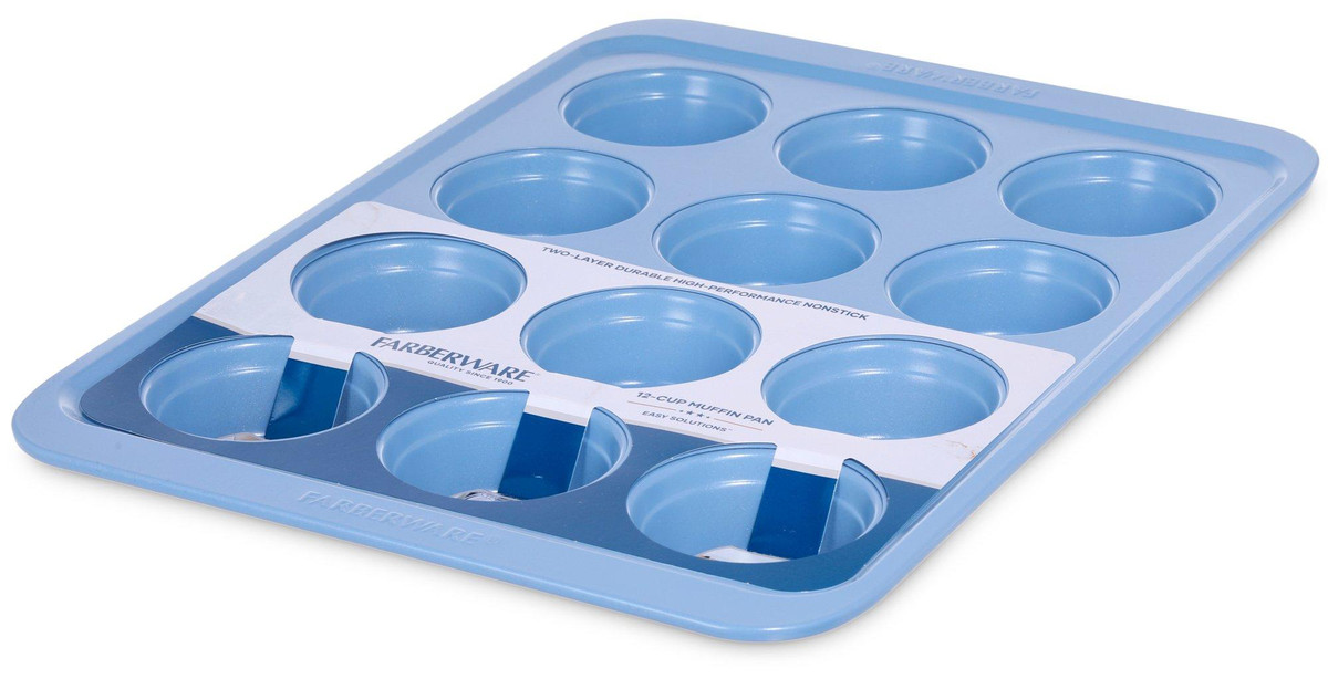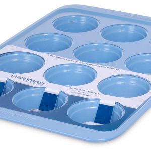 Designed for convenient, easy baking, this baking pan boasts a sturdy, heavy-duty steel construction with two layers of smooth, durable, easy-release nonstick. Unique features on this cupcake and muffin maker include a fill line that shows you just how much batter to add and wide, full-length handles that make it a breeze to move batches from stove to oven to cooling rack.