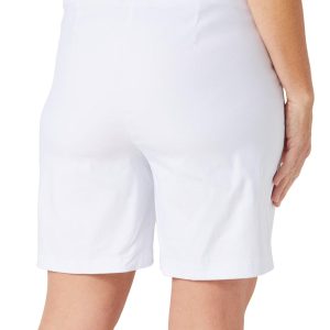 These shorts feature a stylish solid color, pull on waistband, front pockets, and a 7 inch inseam. Ruffle pocket details add a playful touch, making them a fun and comfortable choice for warm weather days.