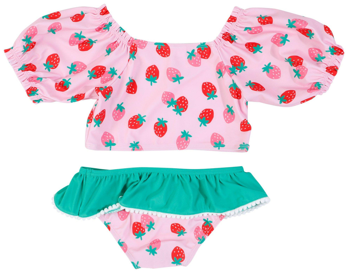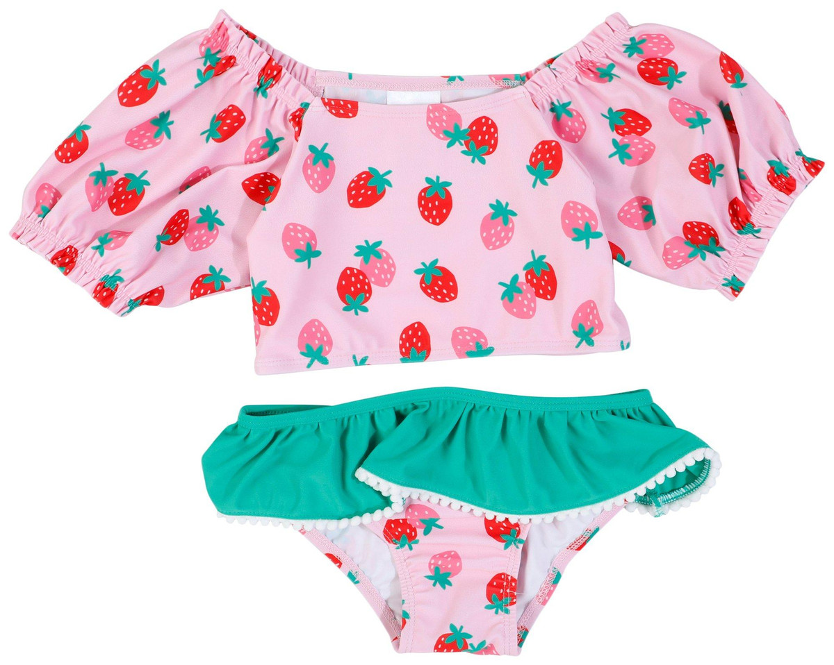 Dive into summer fun with this adorable 2 Piece Swimsuit Set featuring a charming strawberry print. Designed for both style and comfort, this set includes a cute top and matching bottoms, perfect for beach days.