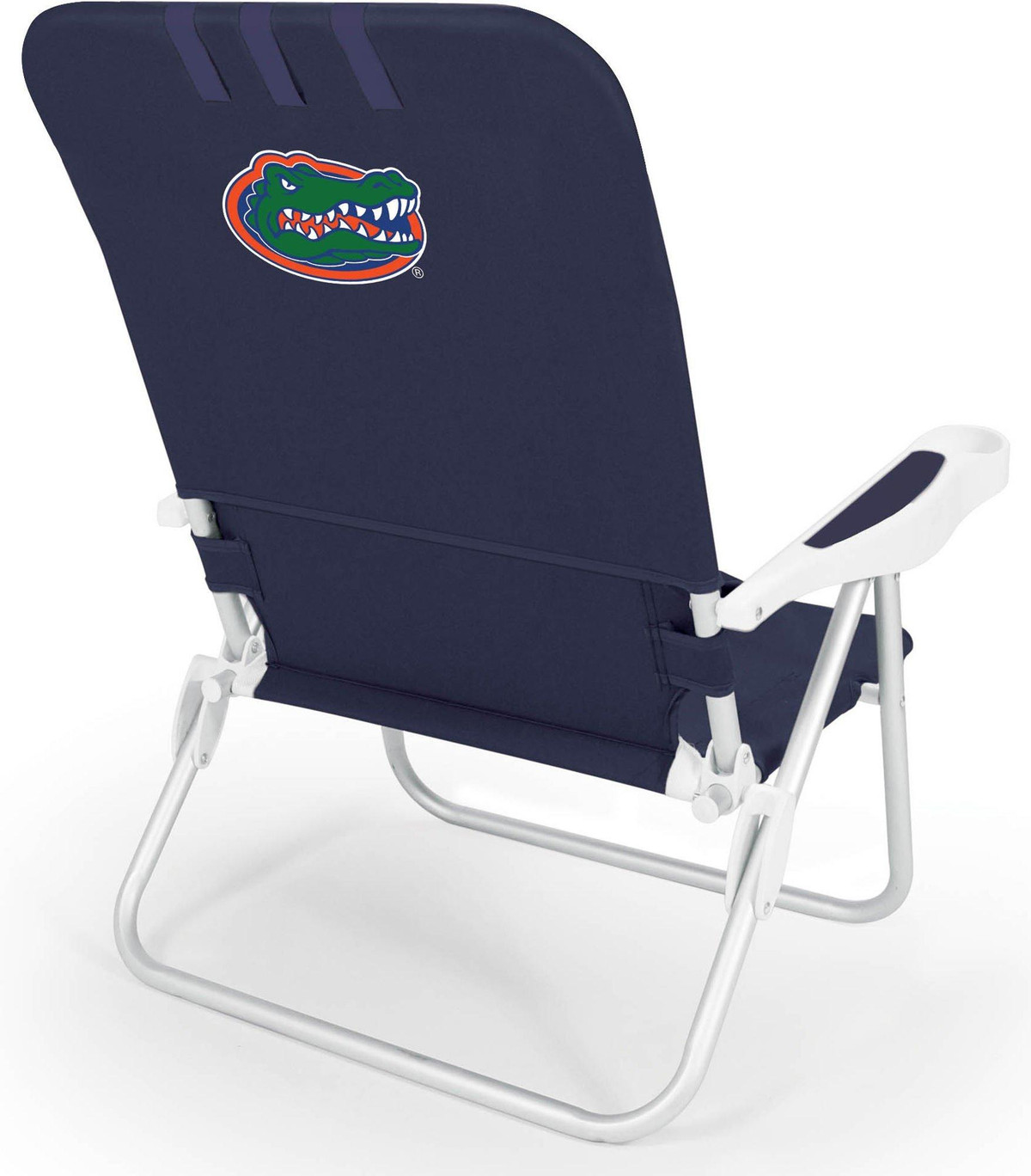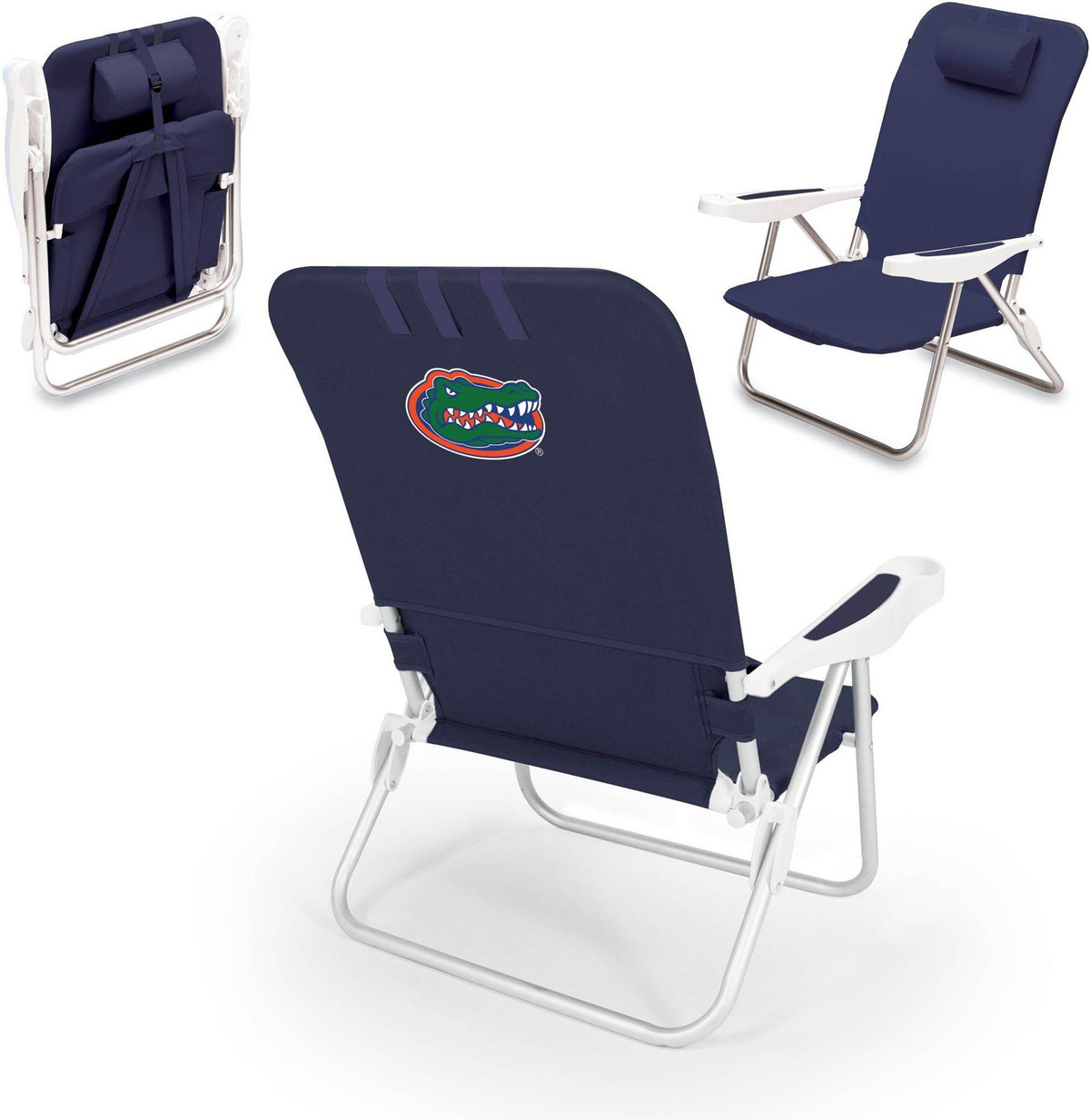 The Monaco Beach Chair is the lightweight and features a 34” 6 position reclining seat back with a 19.5” seat, and sits 11” off the ground. Chair also features cup holder in the armrest, headrest & convenient backpack straps.