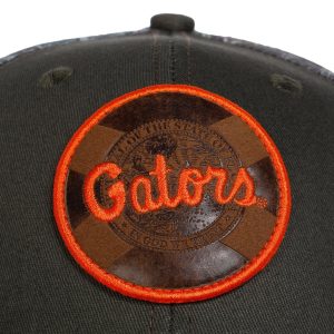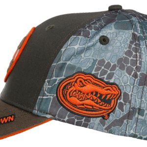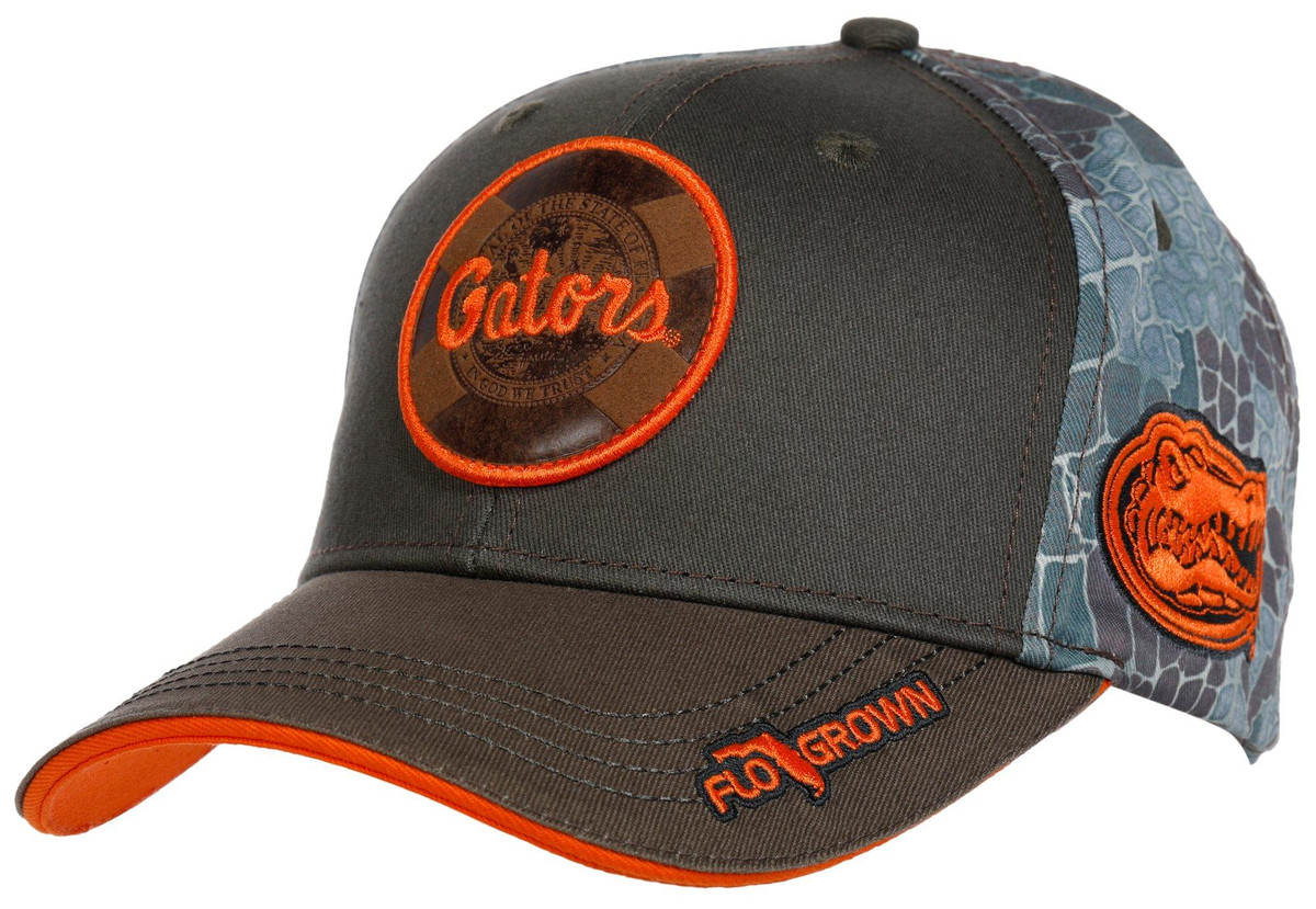 Support your team with bold style in this Mens University of Florida Gators Flag Camo Hat. Featuring a solid front panel with an Florida flag patch overlaid with Gators lettering, its surrounded by camo-patterned fabric for a rugged look. Adjustable for a custom fit. Ideal for outdoor events, tailgates, or everyday wear. Spot clean for best care. Fabrication is 60% cotton, 40% polyester.