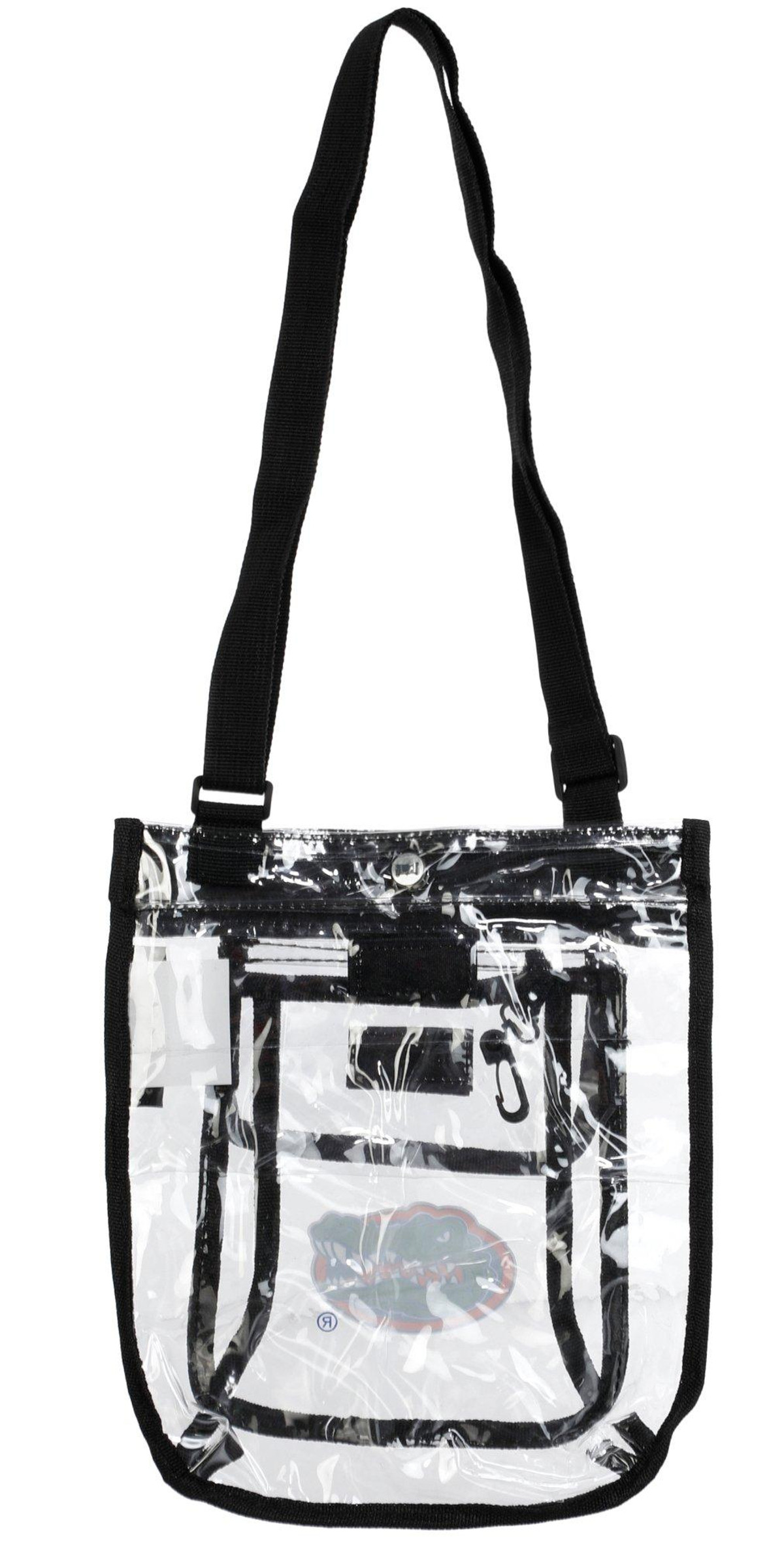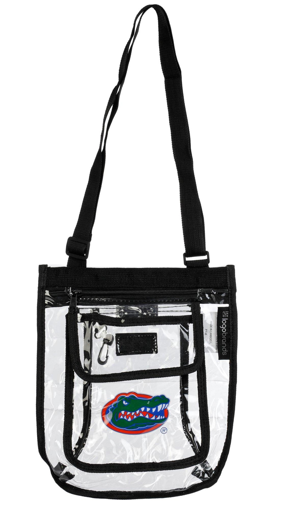 Stay organized on game day with the University of Florida Gators Gameday Clear Crossbody Bag. Designed to meet most stadium regulations, it features a spacious snap closure main compartment, two hook and loop fastener pockets, and a secure zipper pocket for essentials. Ideal for stadium entry, tailgates, or campus events. Wipe clean with a damp cloth.