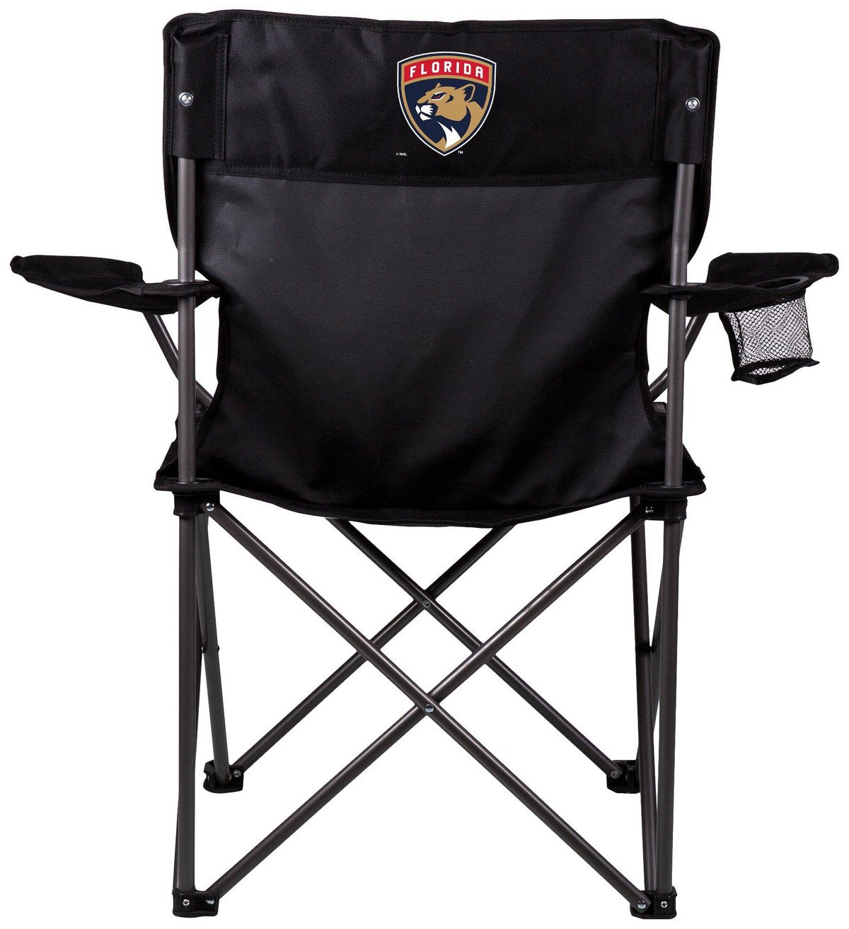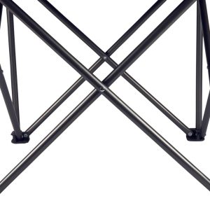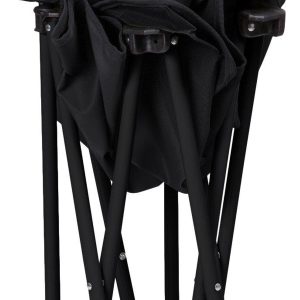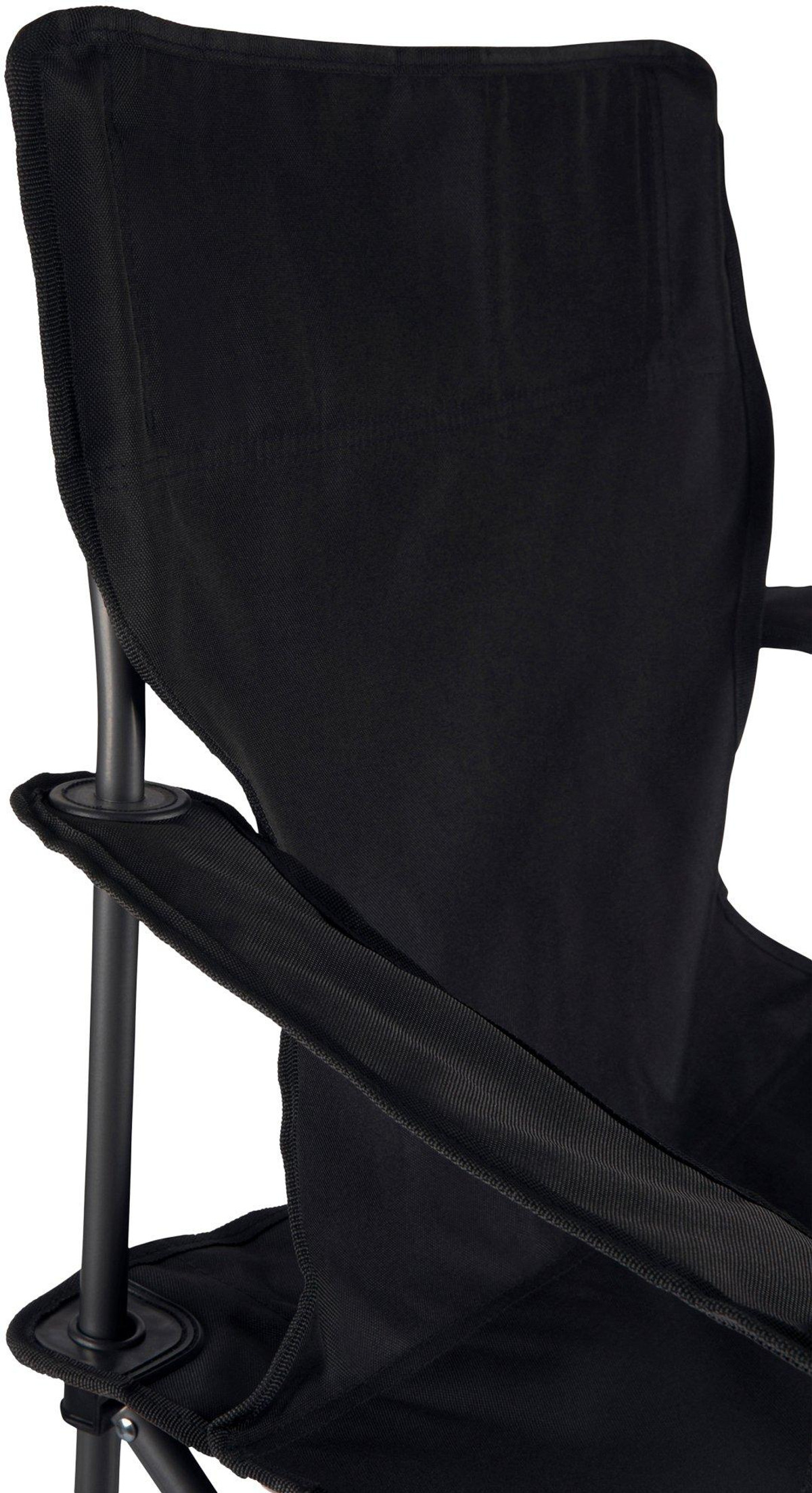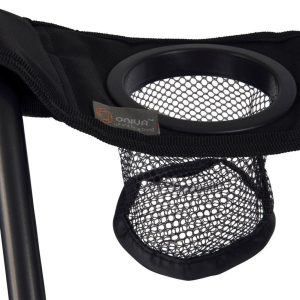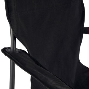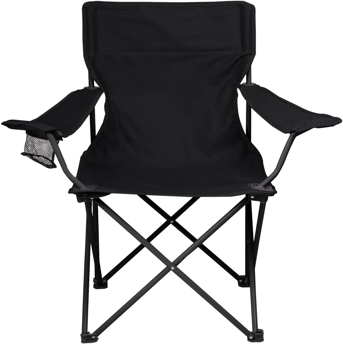 PTZ Camp Chair features a simple and quick set-up design, a natural recline, a mesh drink holder in the right armrest, and a sturdy frame that folds into a drawstring carrying bag with shoulder strap. Measures 16 x 21 x 19.25 inches. Weight capacity 300 lbs.