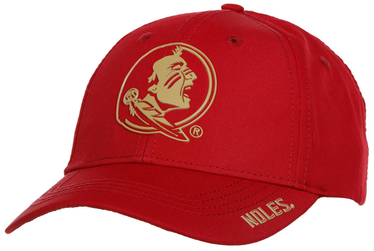 Show team pride in any setting with the Mens FSU Florida State Seminoles Logo Hat. Crafted from all-fabric material in signature garnet, it features the iconic gold Seminole logo prominently on the front and an adjustable closure for a secure fit. Ideal for game days, campus wear, or everyday support. Spot clean for best results. Fabrication is 100% polyester.