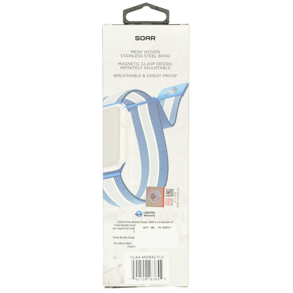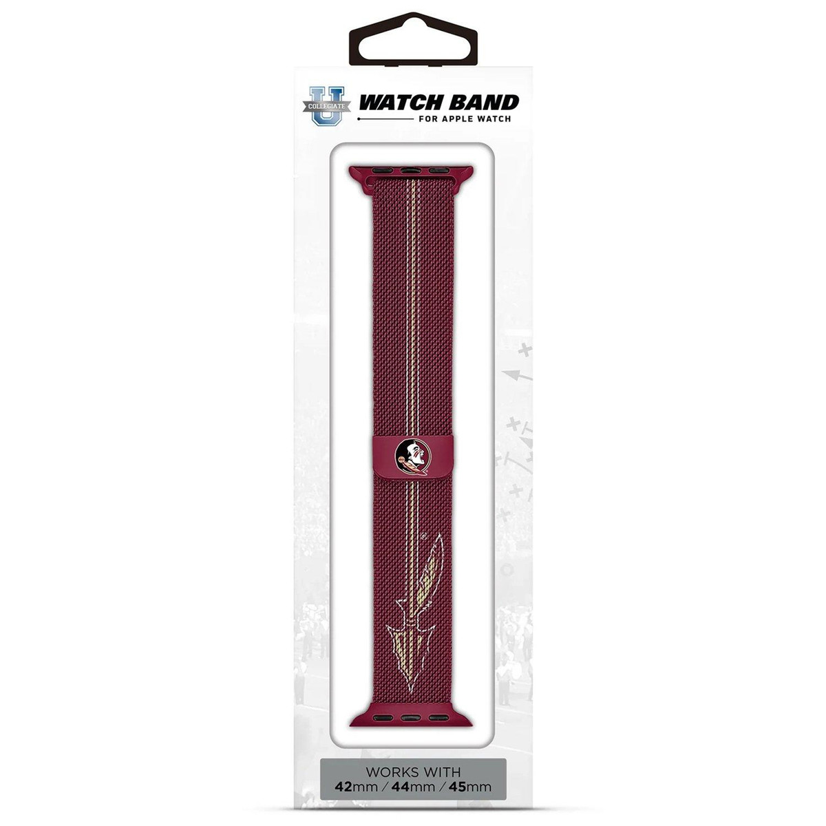 Show your team spirit with the FSU Seminoles Mesh Woven Watchband. This stylish accessory features a durable stainless steel band and a magnetic clasp design that is infinitely adjustable for a perfect fit. The breathable and sweat-proof material ensures comfort during any activity. Compatible with 42 mm, 44 mm, and 45 mm watch faces, this watchband is perfect for any Gators fan looking to combine functionality with team pride.