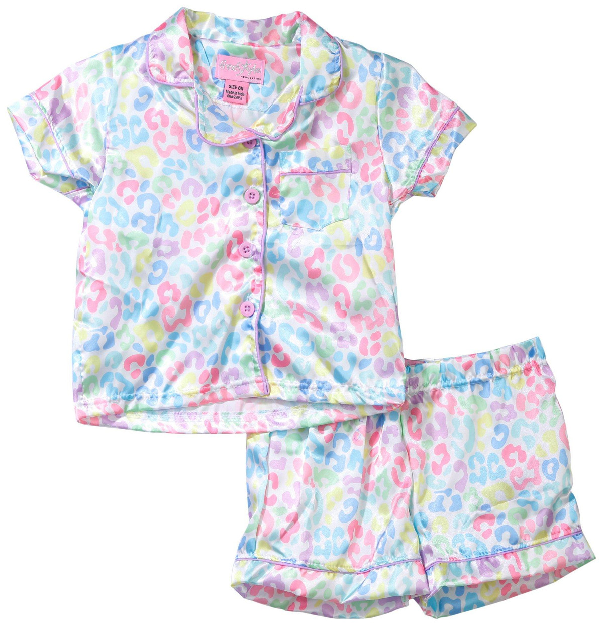 Freestyle Big Girls Rainbow Leopard Print Pajama Set