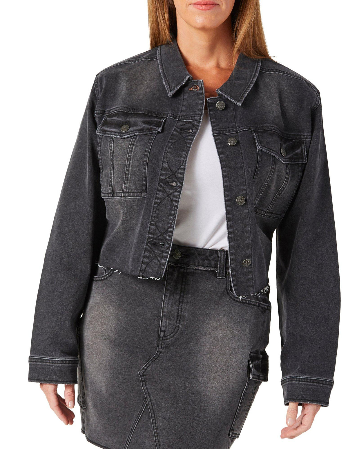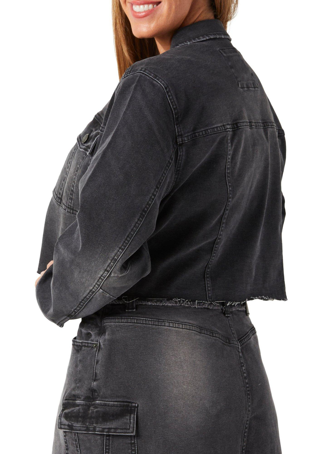 This womens cropped denim jacket brings a modern twist to a classic look. Featuring a button down front, collared neckline, and chest pockets it is finished with a cropped length for a flattering stylish fit.