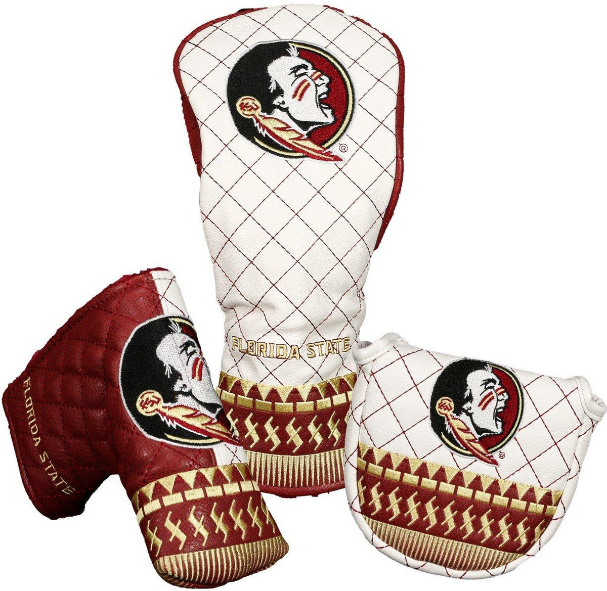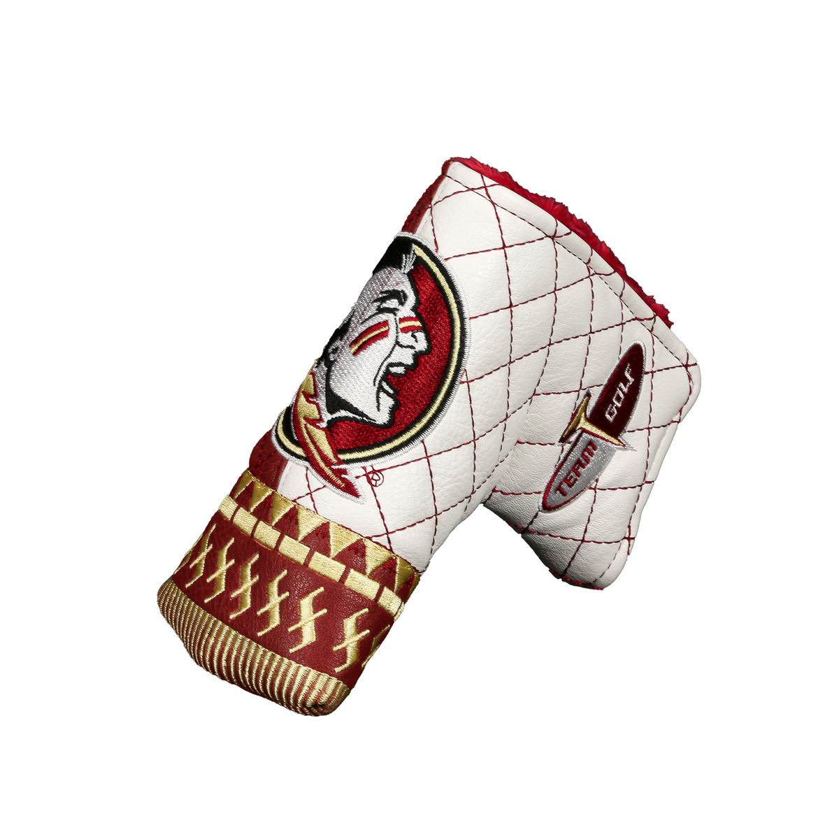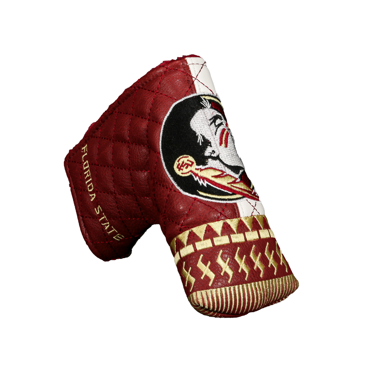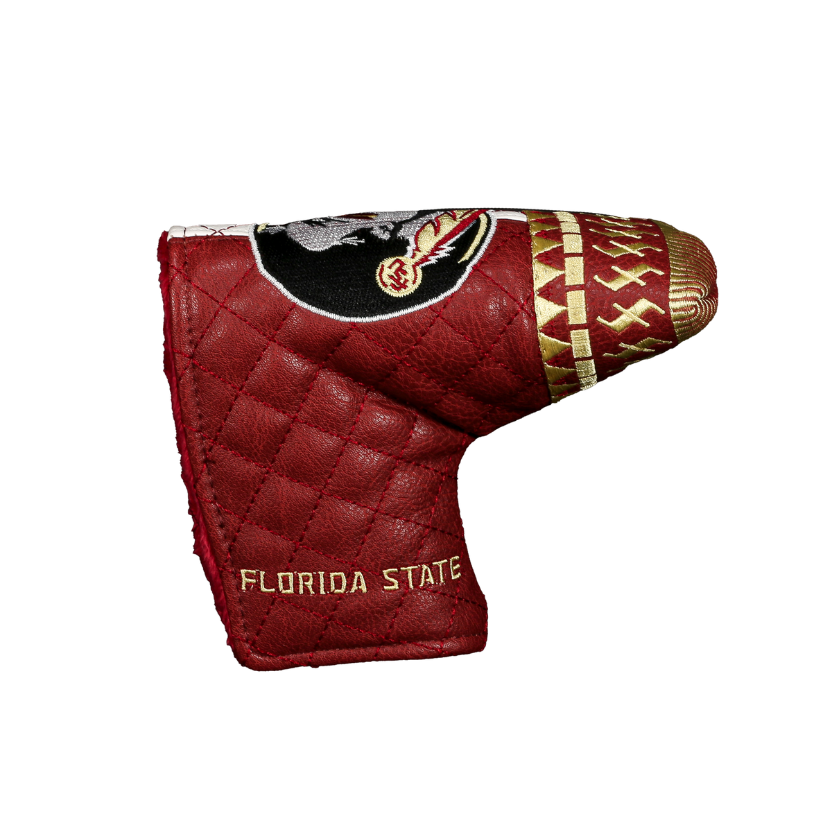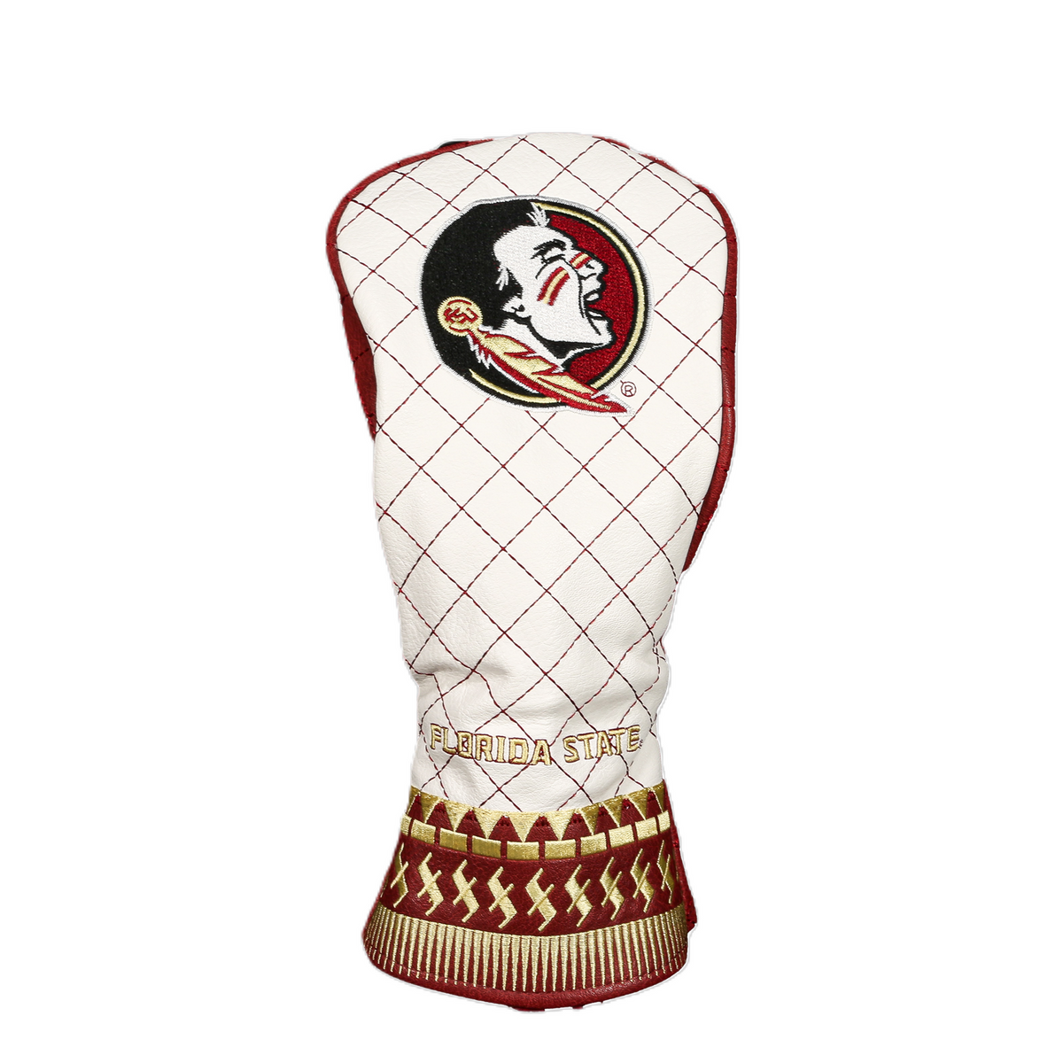 Rep your team with a custom FSU Florida State Seminoles Headcover from our highly sought-after NCAA Golf Collection. Our Golf Headcovers are uniquely designed in-house from CMC Designs. Add a touch of personality and enhance your golf game in style. Our headcovers are meticulously crafted using top-quality faux leather with a plush inner lining to protect your investment.