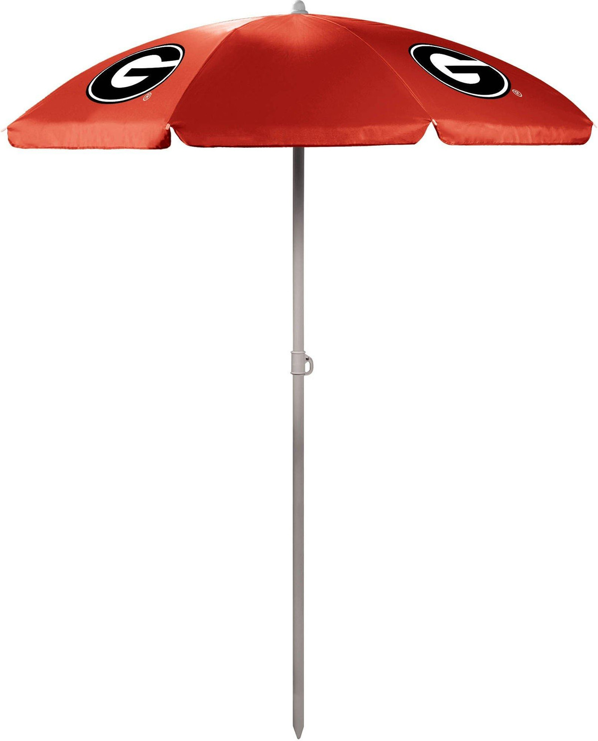 This umbrella is perfect for the beach, tailgating, or picnics. The pole measures 81.5” tall and 1.25” diameter with a tilting option as well as pointed end for easier penetration into the ground. Umbrella measures 5.5′ across. Sturdy drawstring bag with strap included.