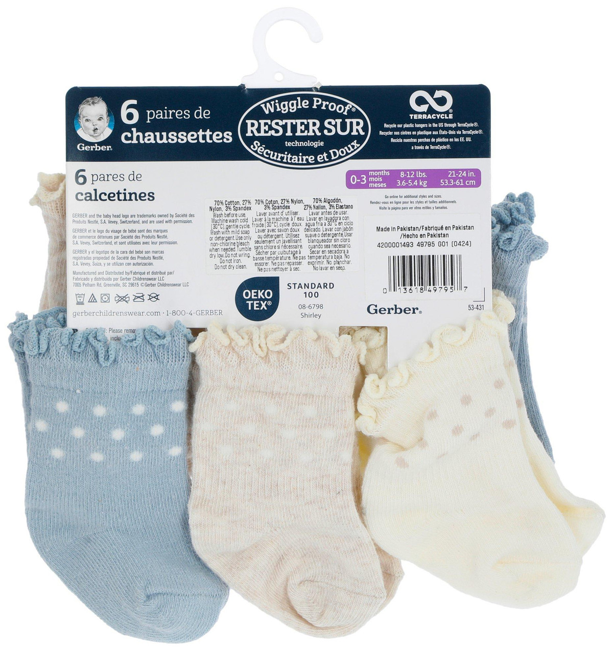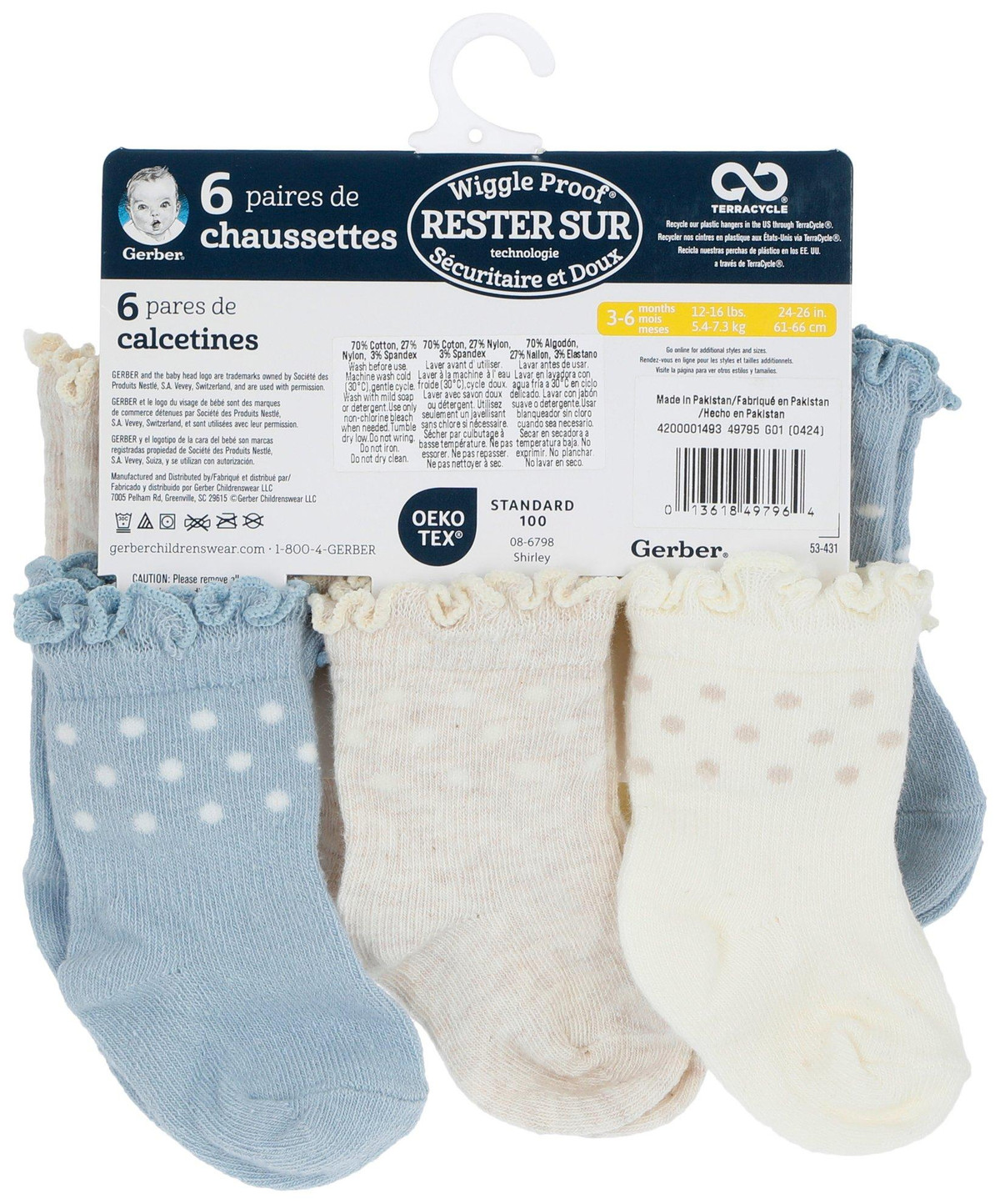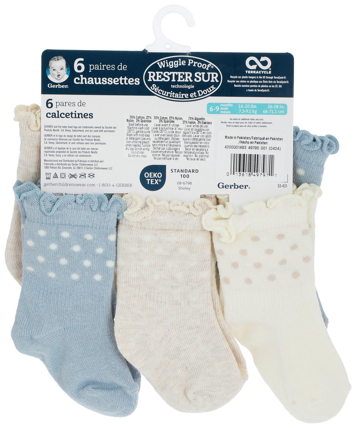 Gerber Baby Girls 6 Pk Lettuce Edge Wiggle Proof Socks