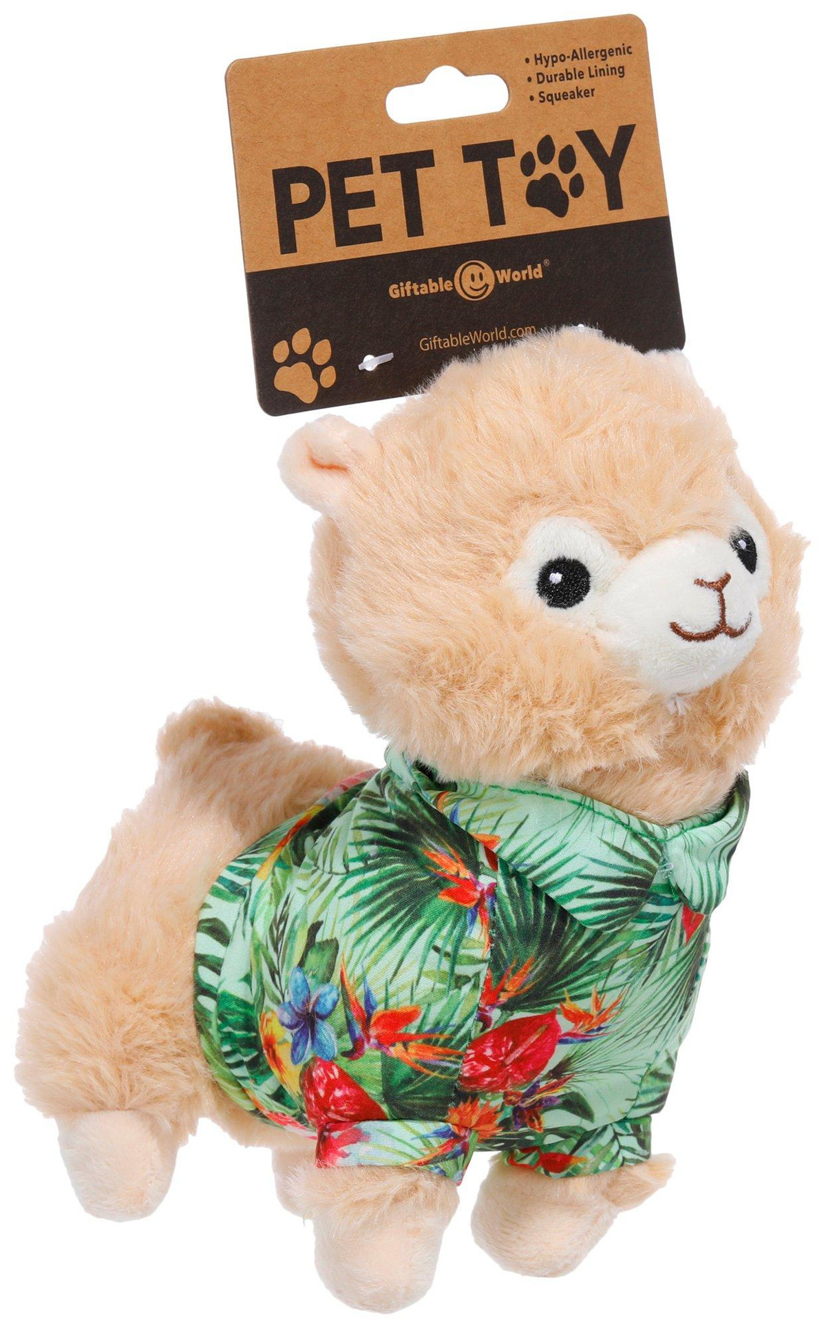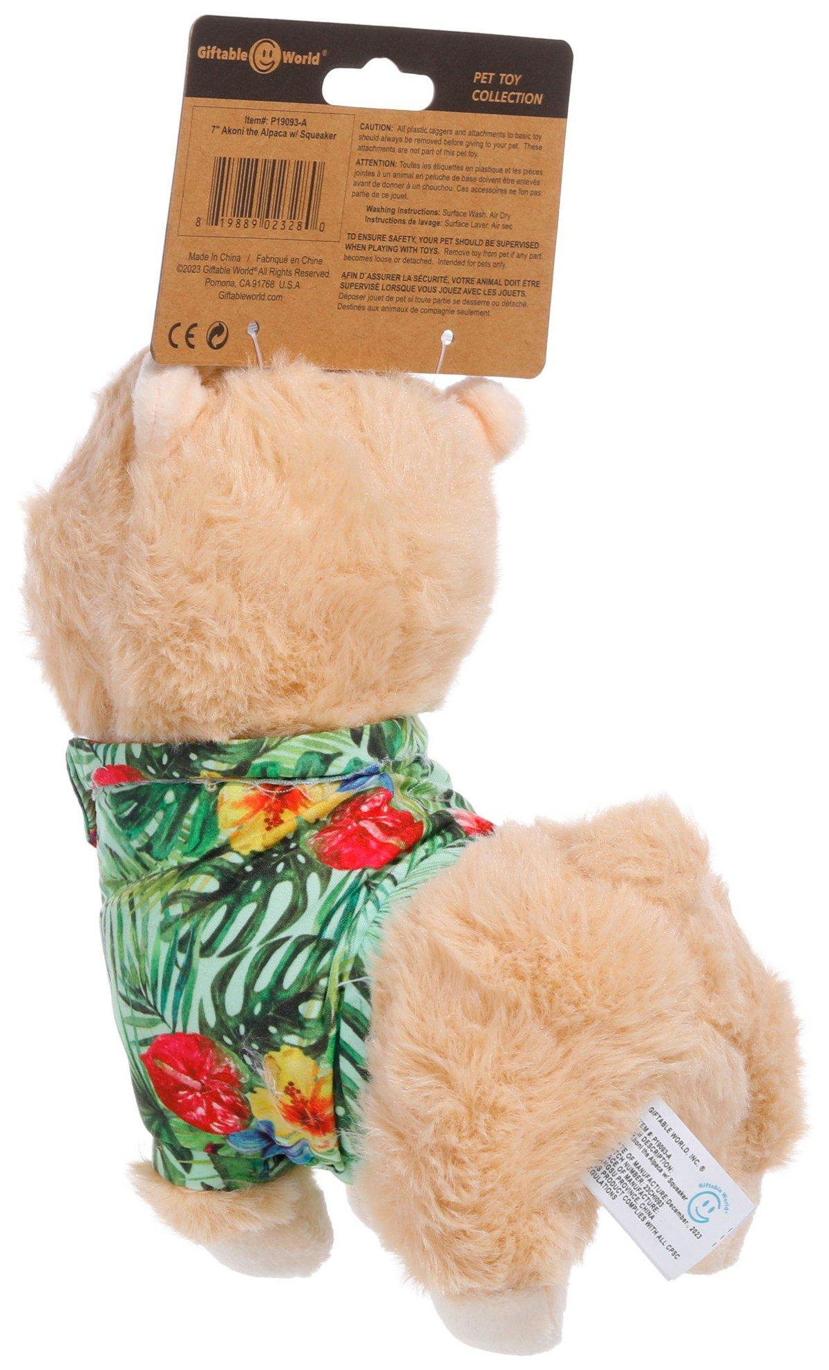 Turn up the playtime charm with this alpaca dog toy! This soft, plush pet toy is built for excitement, with a squeaker inside. It’s soft yet durable, perfect for cuddles or energetic games of fetch. Fabrication is 100% Polyester. Measures approximately 7 in x 7 in x 4 in.