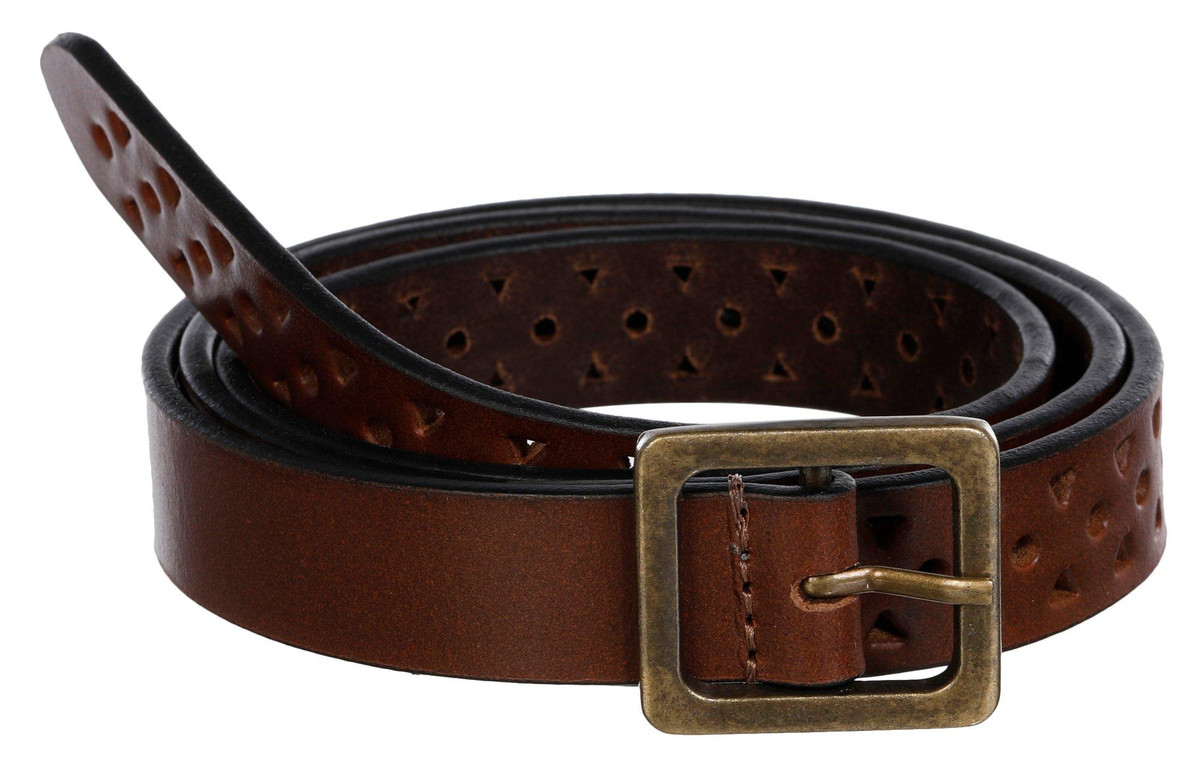 The Gloria Vanderbilt womens genuine leather belt is a sleek and stylish essential with a twist. Its slim silhouette is accented by a series of decorative micro-punched holes that add texture and visual appeal without shouting for attention. This is the McGyver of accessoriessubtle, versatile, and ready to elevate any outfit. A smart gift for the woman who appreciates quiet sophistication and everyday elegance.