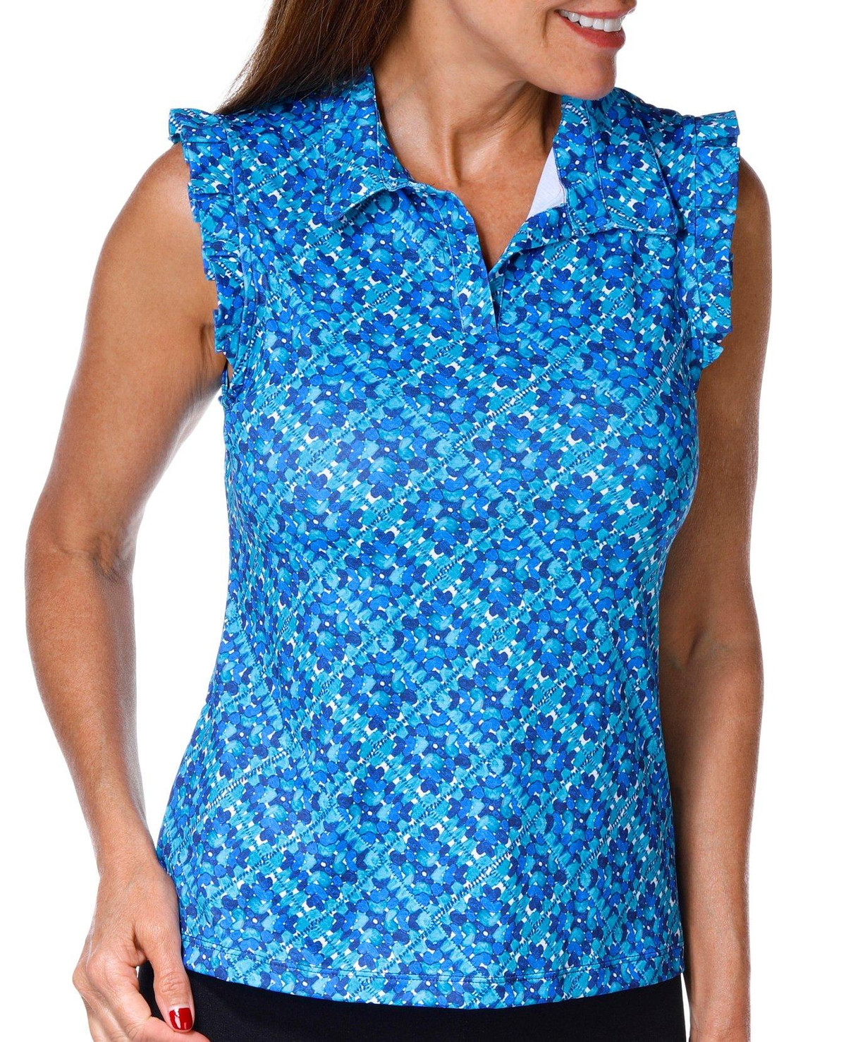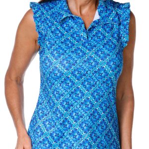 Elevate your activewear with our Women’s Active Print Polo Tank Top! Made from a comfortable polyester and spandex blend, it offers flexibility and breathability. Featuring a stylish collared neckline and ruffle sleeves, this versatile shirt is perfect for both workouts and casual outings. The top length measures approximately 24 in.