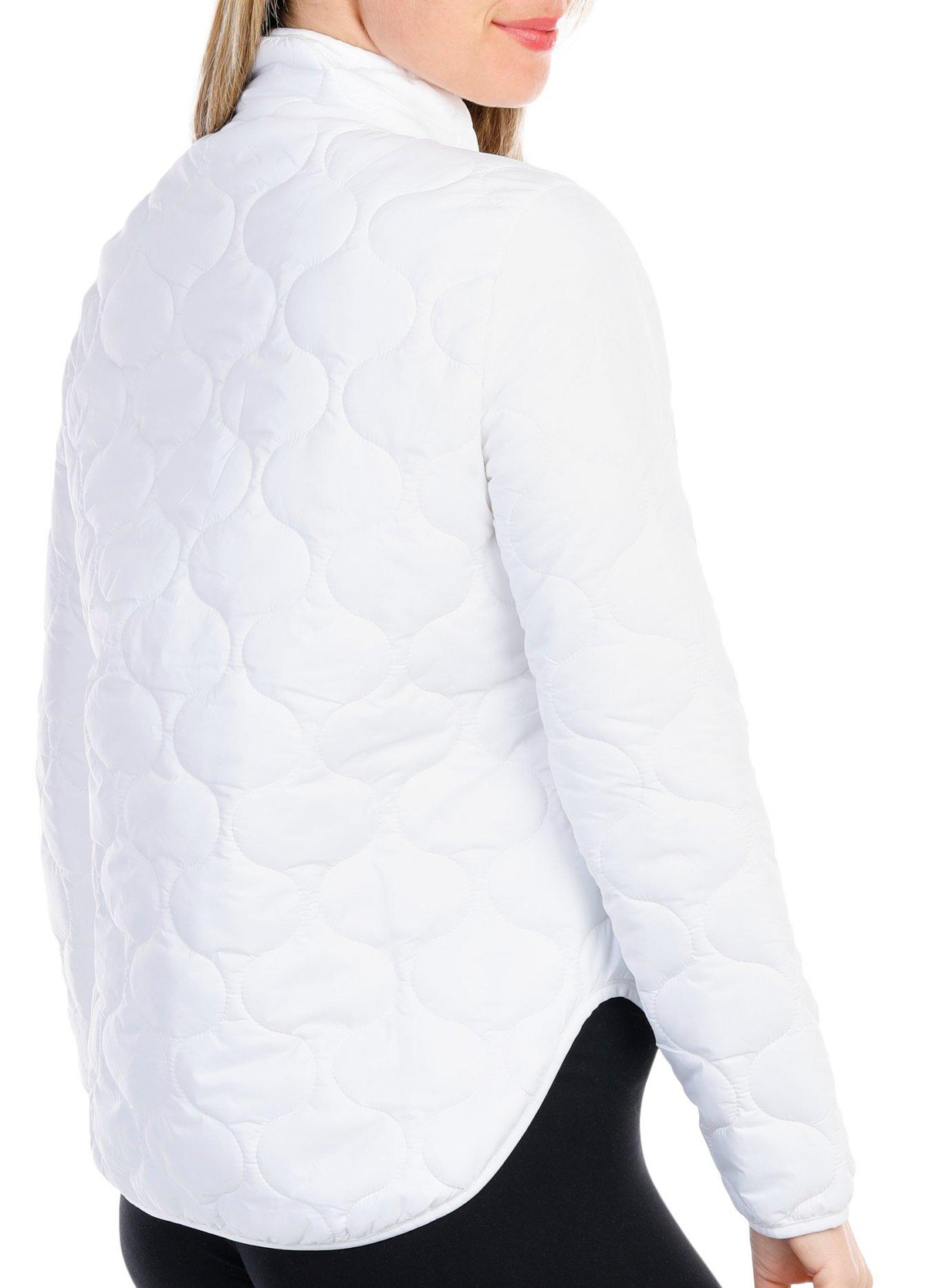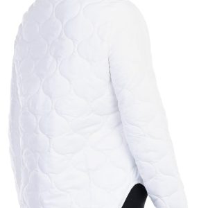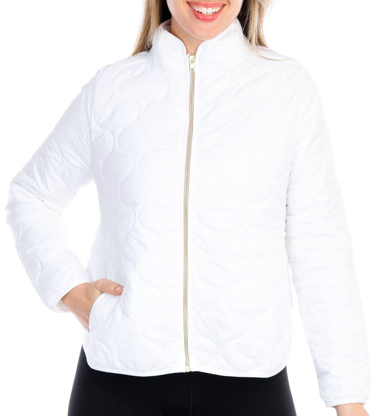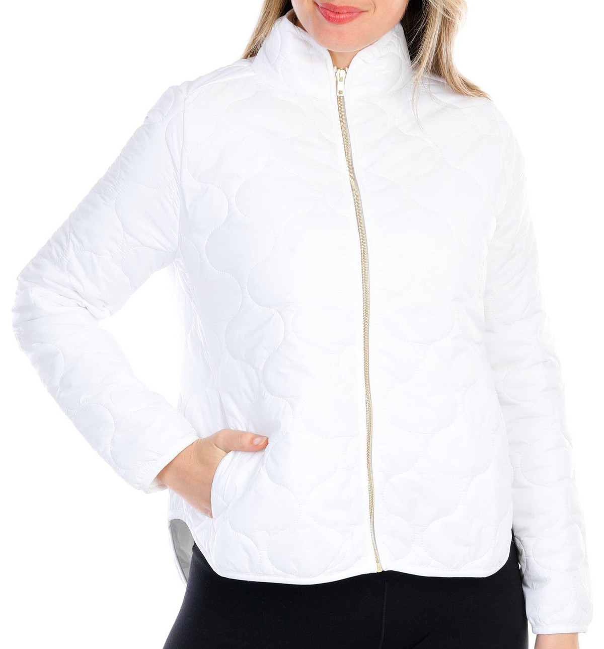 This medium-weight knit jacket features a solid color design on soft quilted fabric, front full zipper closure, two front slash hand pockets, mock collar, and a modern classic fit. The top length measures approximately 26 in.