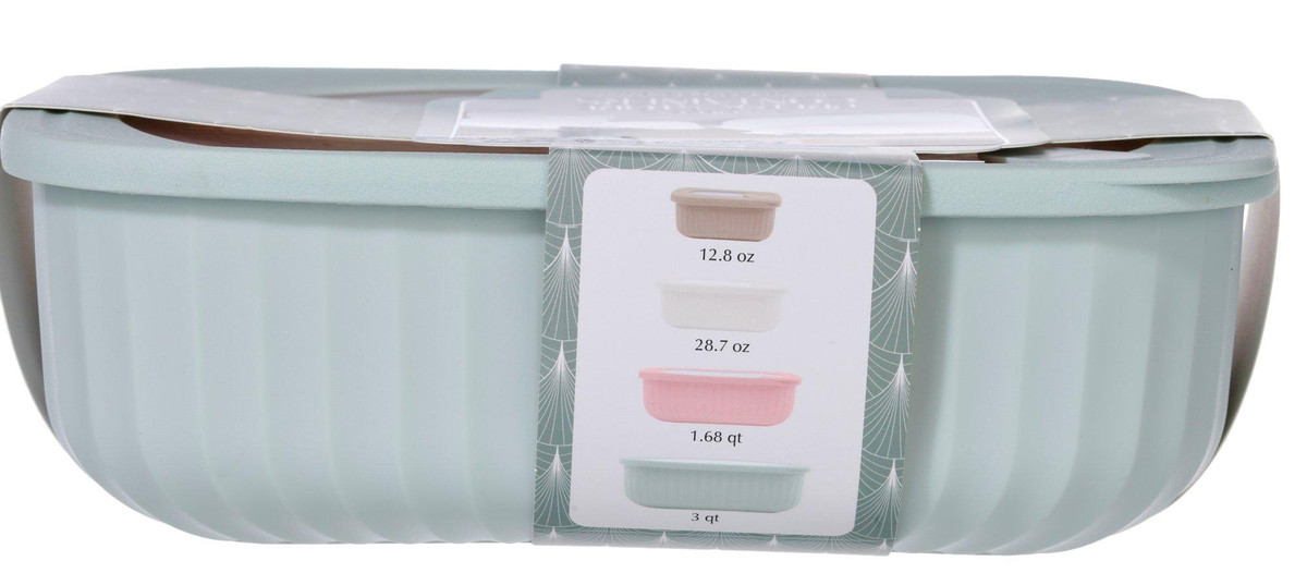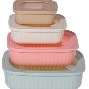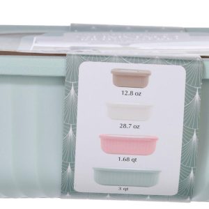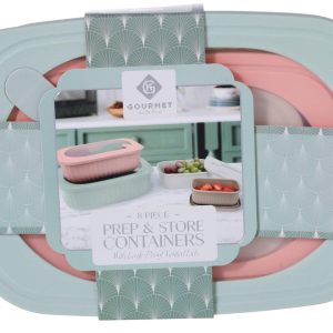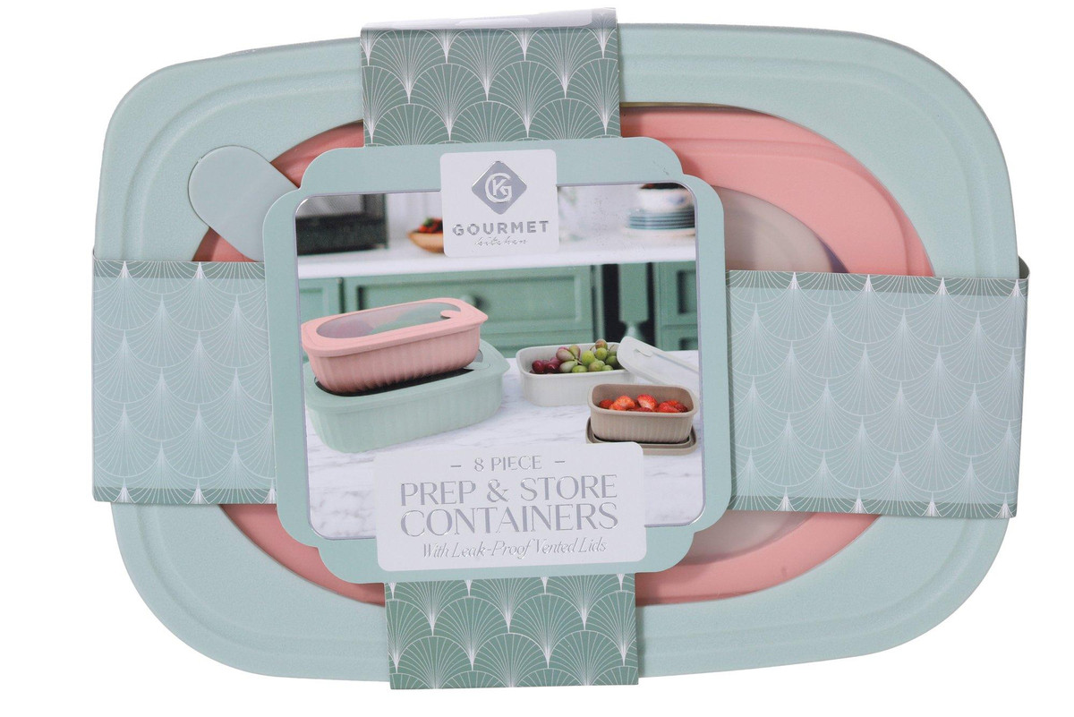 This 8 piece prep and storage container set includes 4 containers with matching leak proof vented lids for secure and mess free use. Ideal for meal prep, leftovers or on the go snacks, this set offers convenience and freshness in one. Includes one 12.8 OZ, one 28.7 OZ, one 1.68 QT, and one 3 QT container.