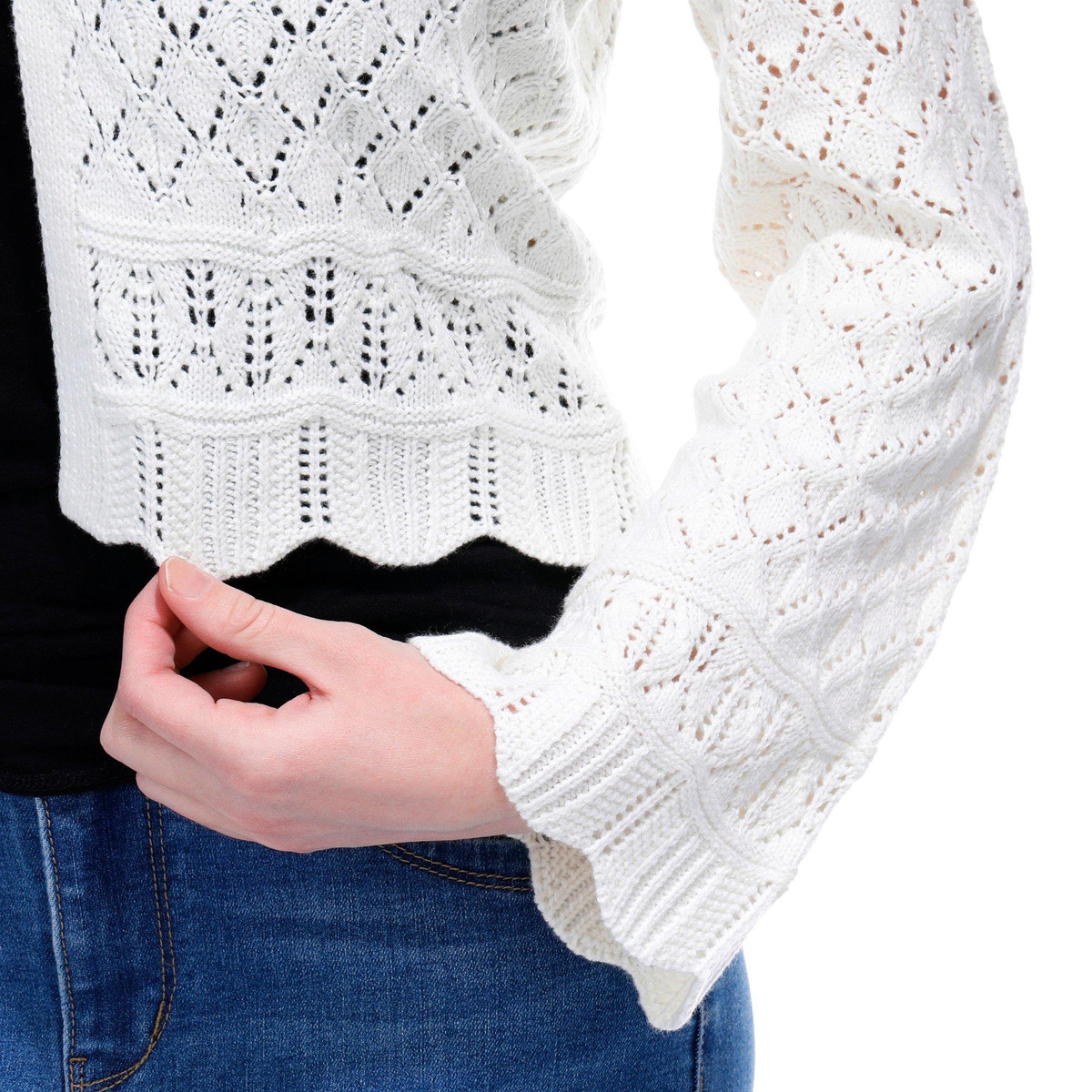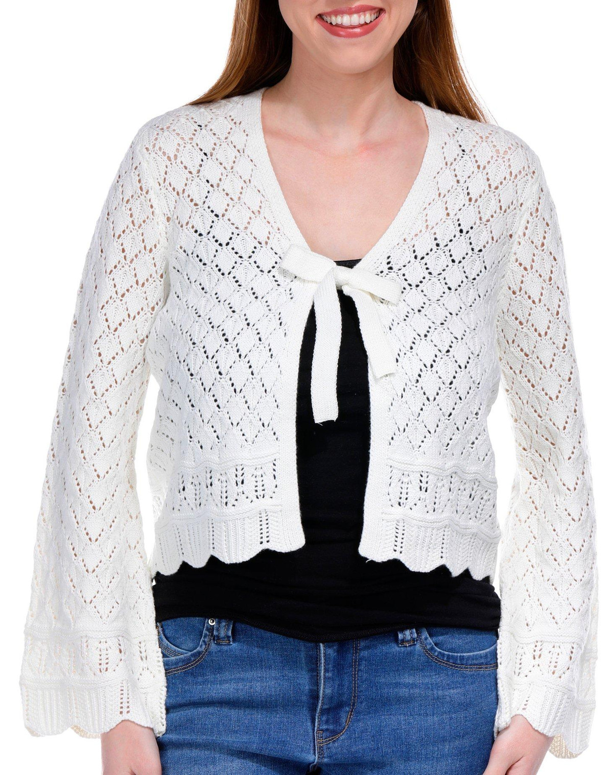 Greige Womens Long Sleeve Crochet Cardigan