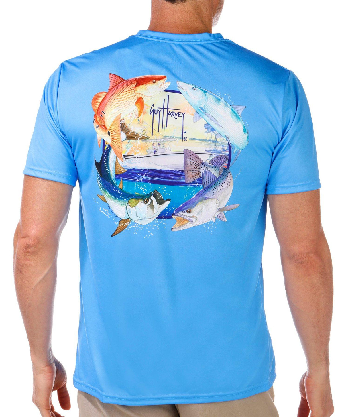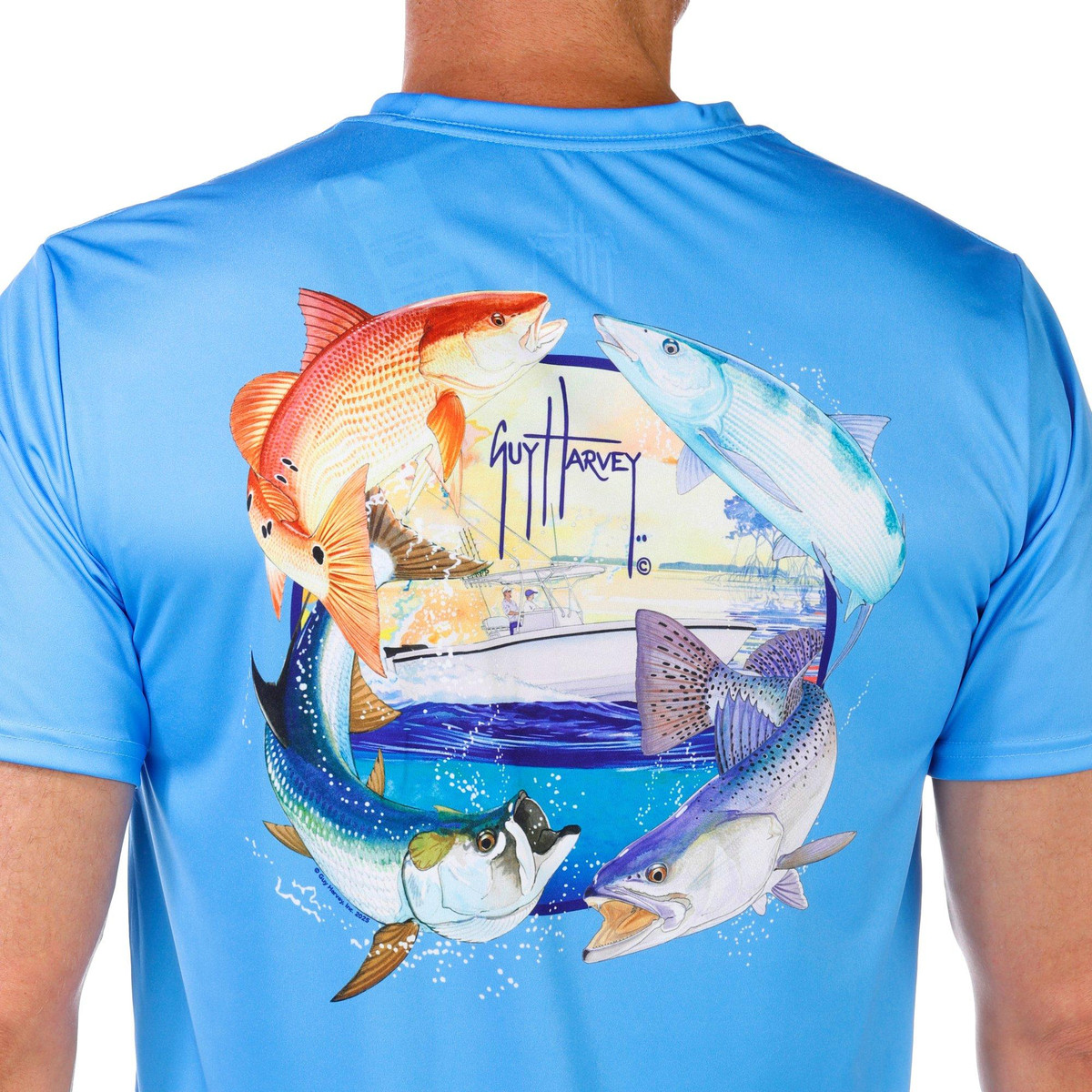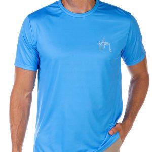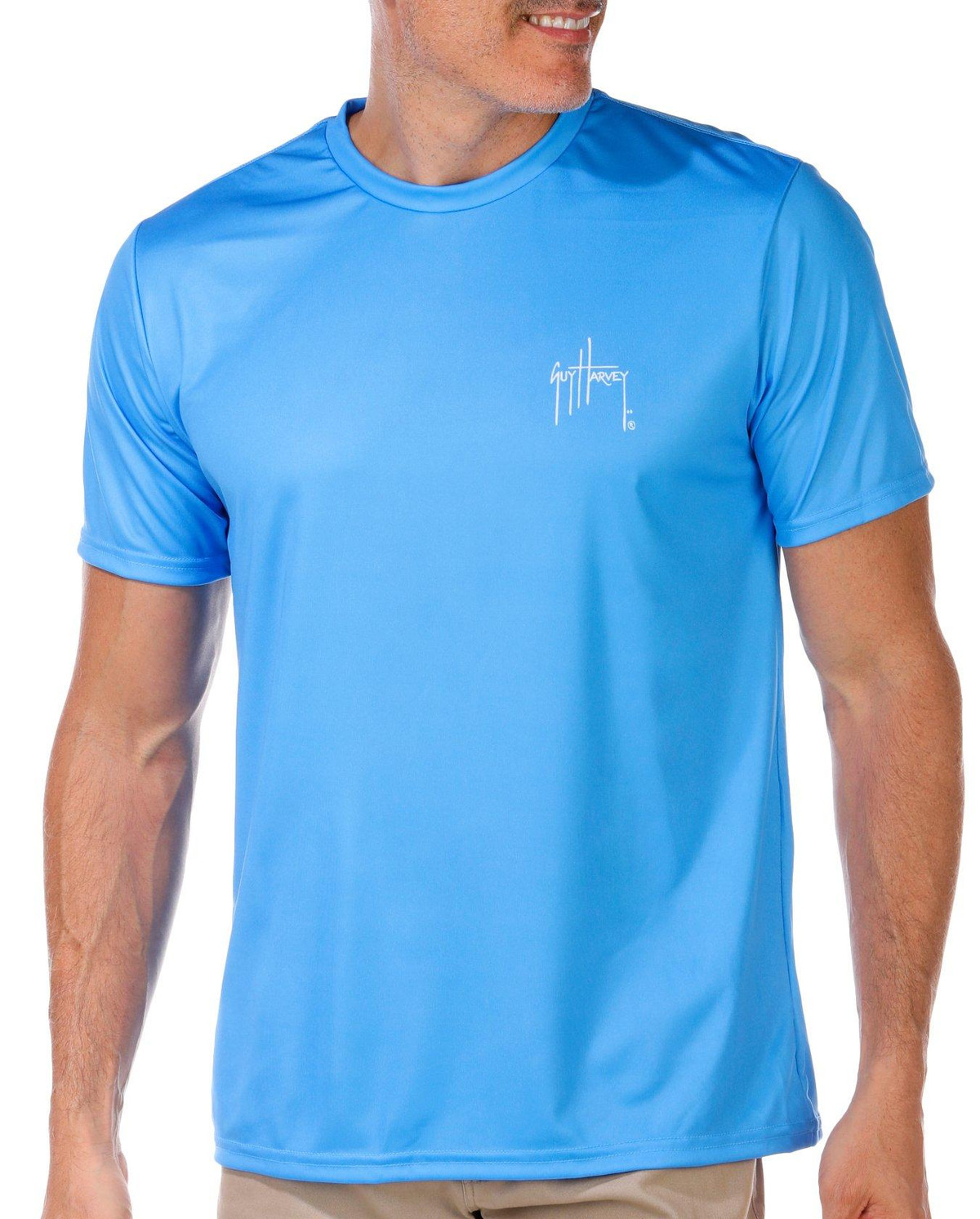 Stay cool and protected in our Men’s Short Sleeve Performance Shirt. Featuring a crew neckline, short sleeves, and brand script on the chest, it is made with moisture-wicking fabric and UPF 40 sun protection. A bold back graphic adds standout style for active days. Fabrication 100% polyester