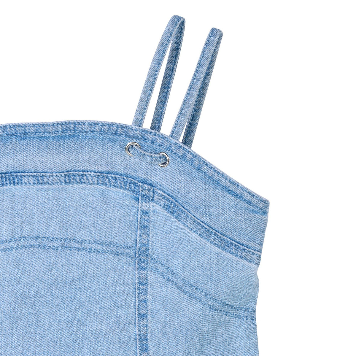 Add casual charm with the Girls FitNFlare Denim Dress with spaghetti straps crafted from stretch denim fabric. The flattering fitandflare silhouette offers ease of movement while maintaining structure. Adjustable spaghetti straps and soft stretch ensure a comfortable fit for play or outings. Ideal for casual wear, park visits or everyday styling. Machine wash cold for easy care.