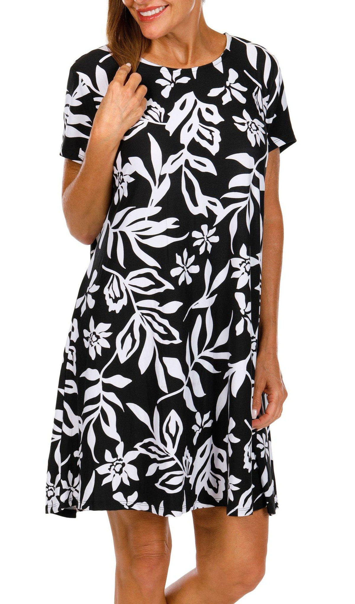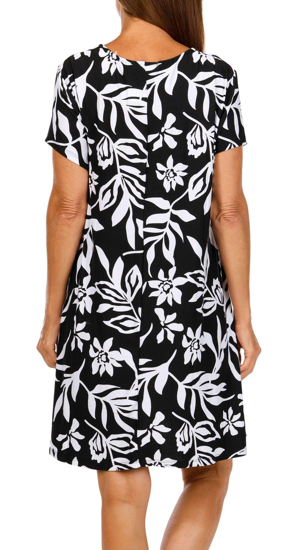 The Women’s Short Sleeve Swing Dress combines comfort and style with its flowy silhouette and tropical print. Designed to flatter every body type, this dress offers a relaxed fit and soft fabric that moves with you. Perfect for warm weather, it is ideal for casual outings or dressing up for special occasions. Fabrication is 92% polyester, 8% spandex.