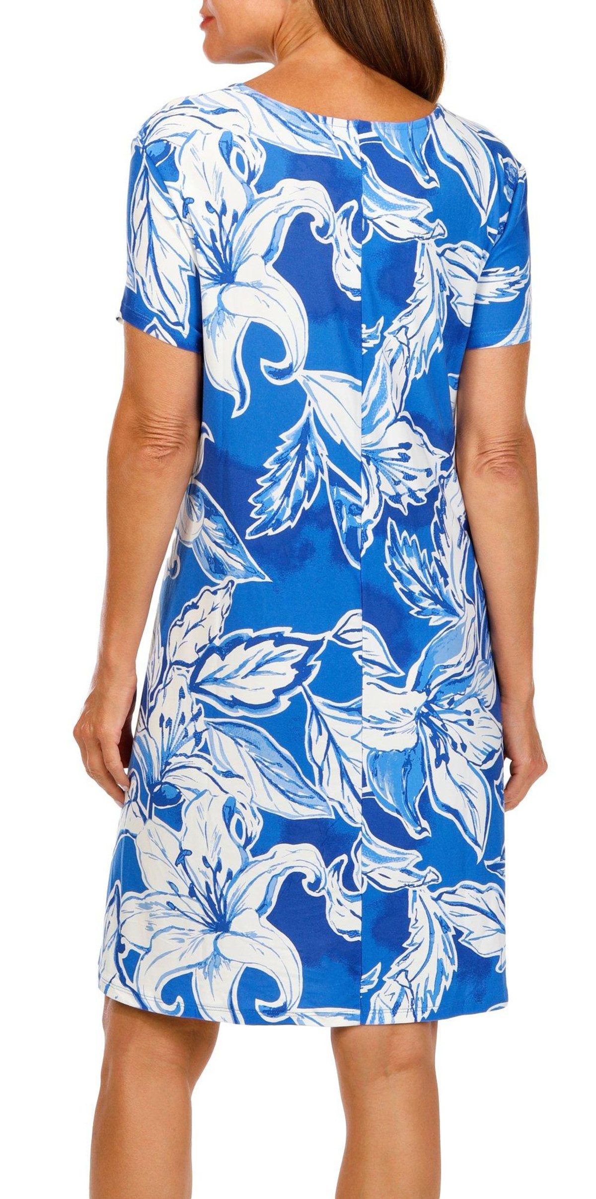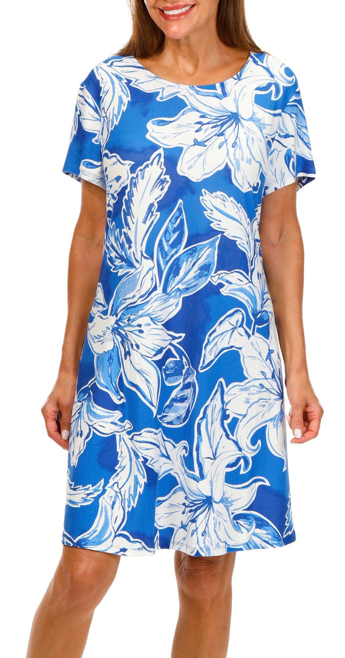 The Women’s Short Sleeve Swing Dress combines comfort and style with its flowy silhouette and tropical print. Designed to flatter every body type, this dress offers a relaxed fit and soft fabric that moves with you. Perfect for warm weather, it is ideal for casual outings or dressing up for special occasions. Fabrication is 92% polyester, 8% spandex.
